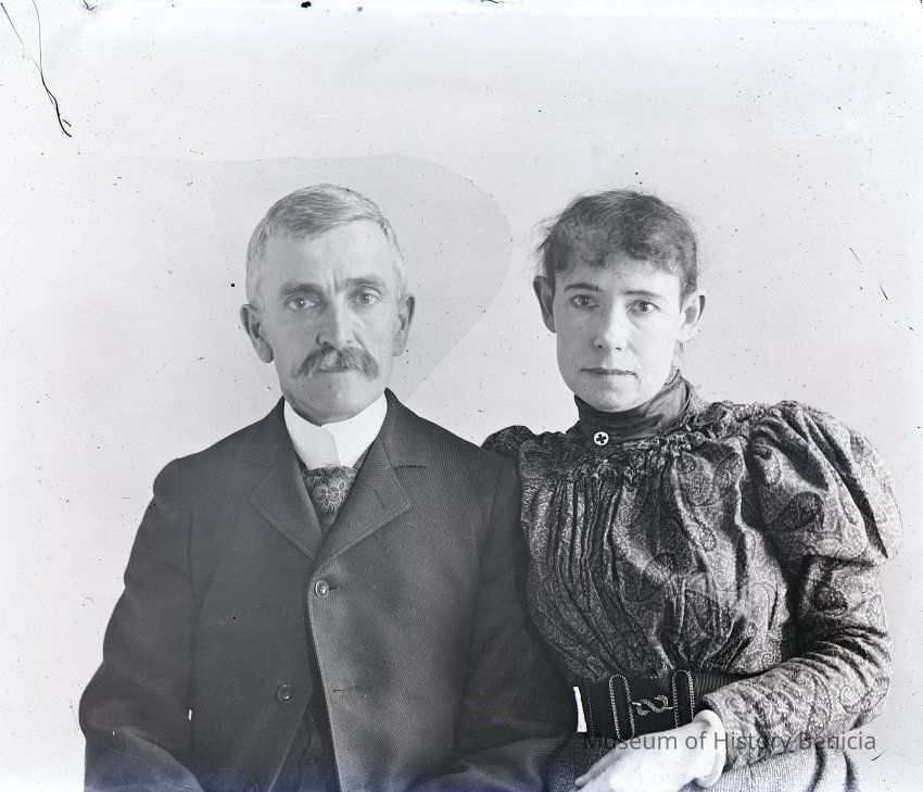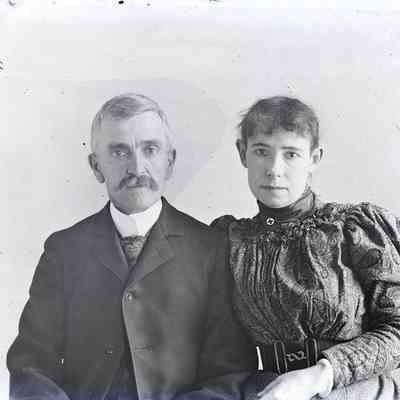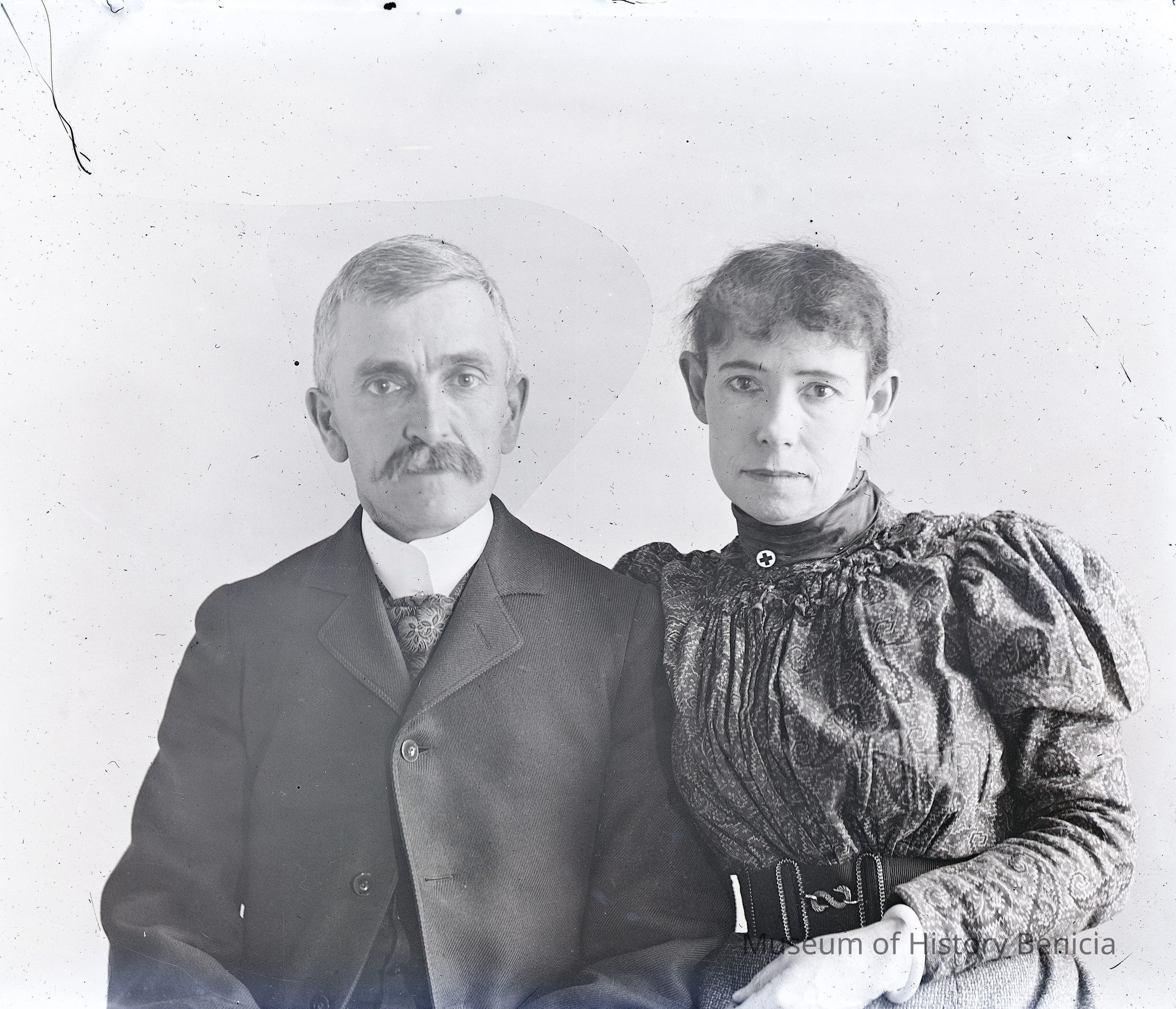 glass plate negative from plate box identified as either Gap Carson or Carmel Cal. Portrait of Franklin Fish and Henrietta Riddell-Fish.Collection