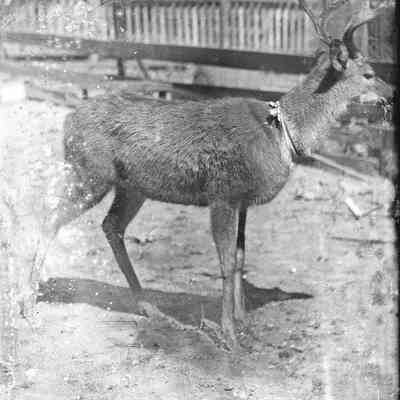A photo of a reindeer in a yard.