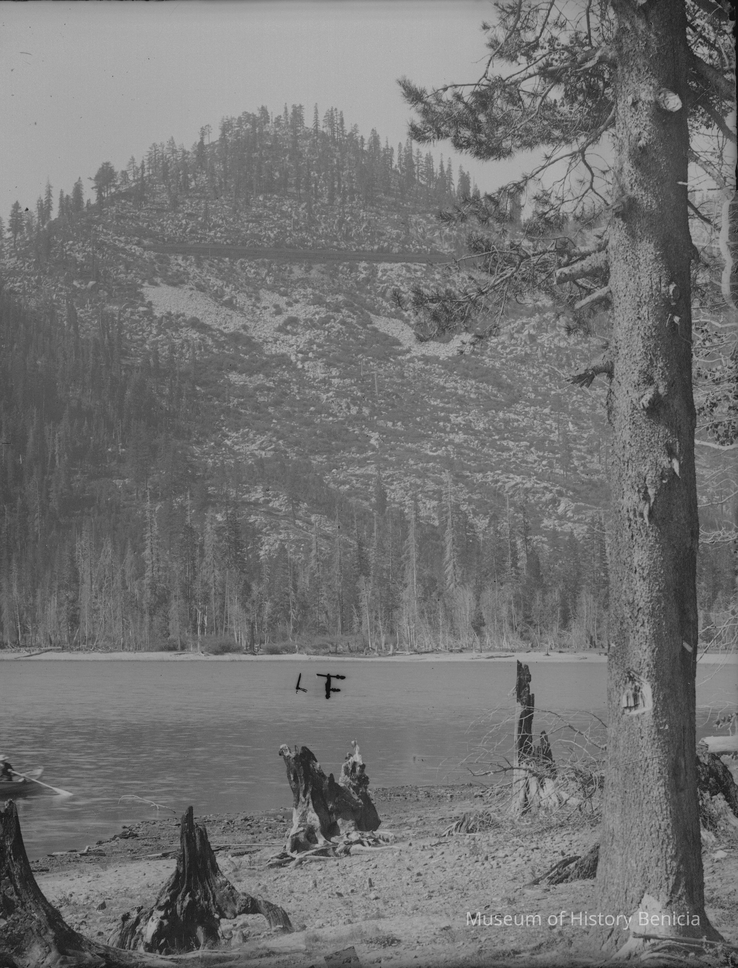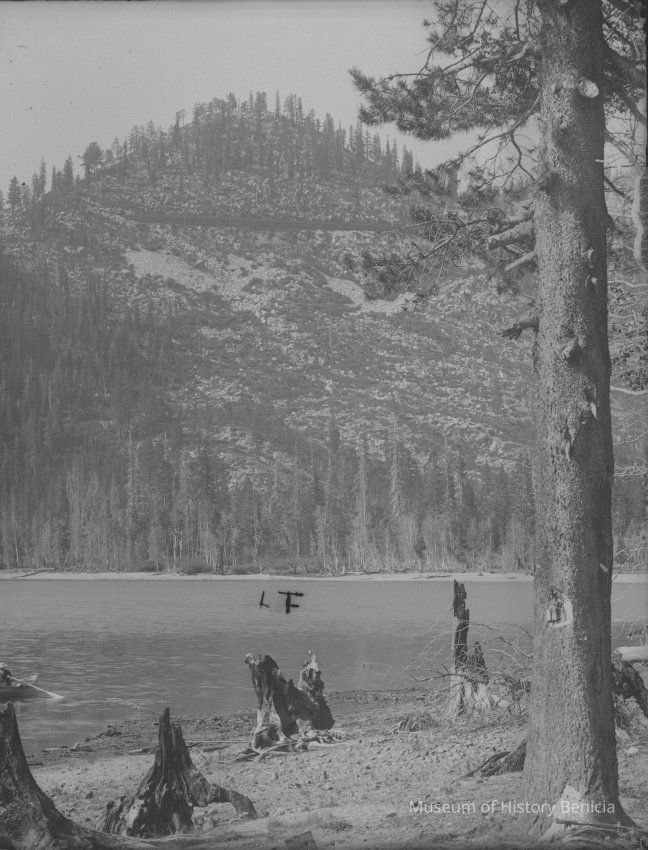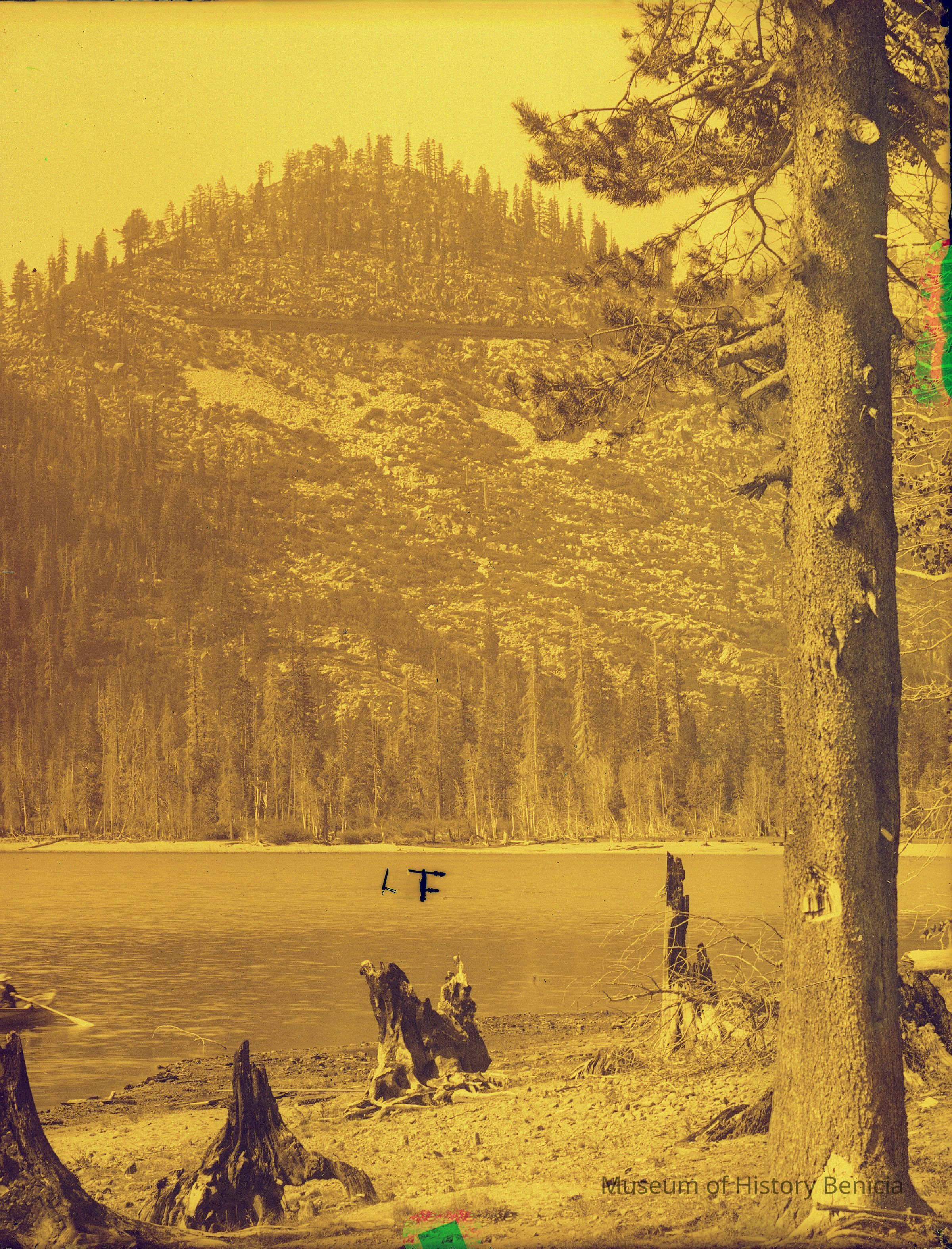 glass plate negative from plate box identified as either Gap Carson or Carmel Cal Mountain lake and hill.
