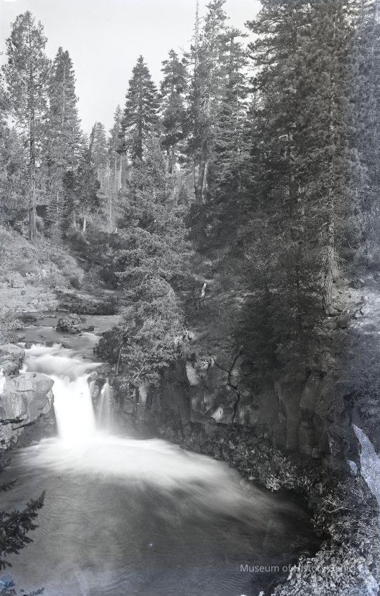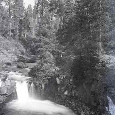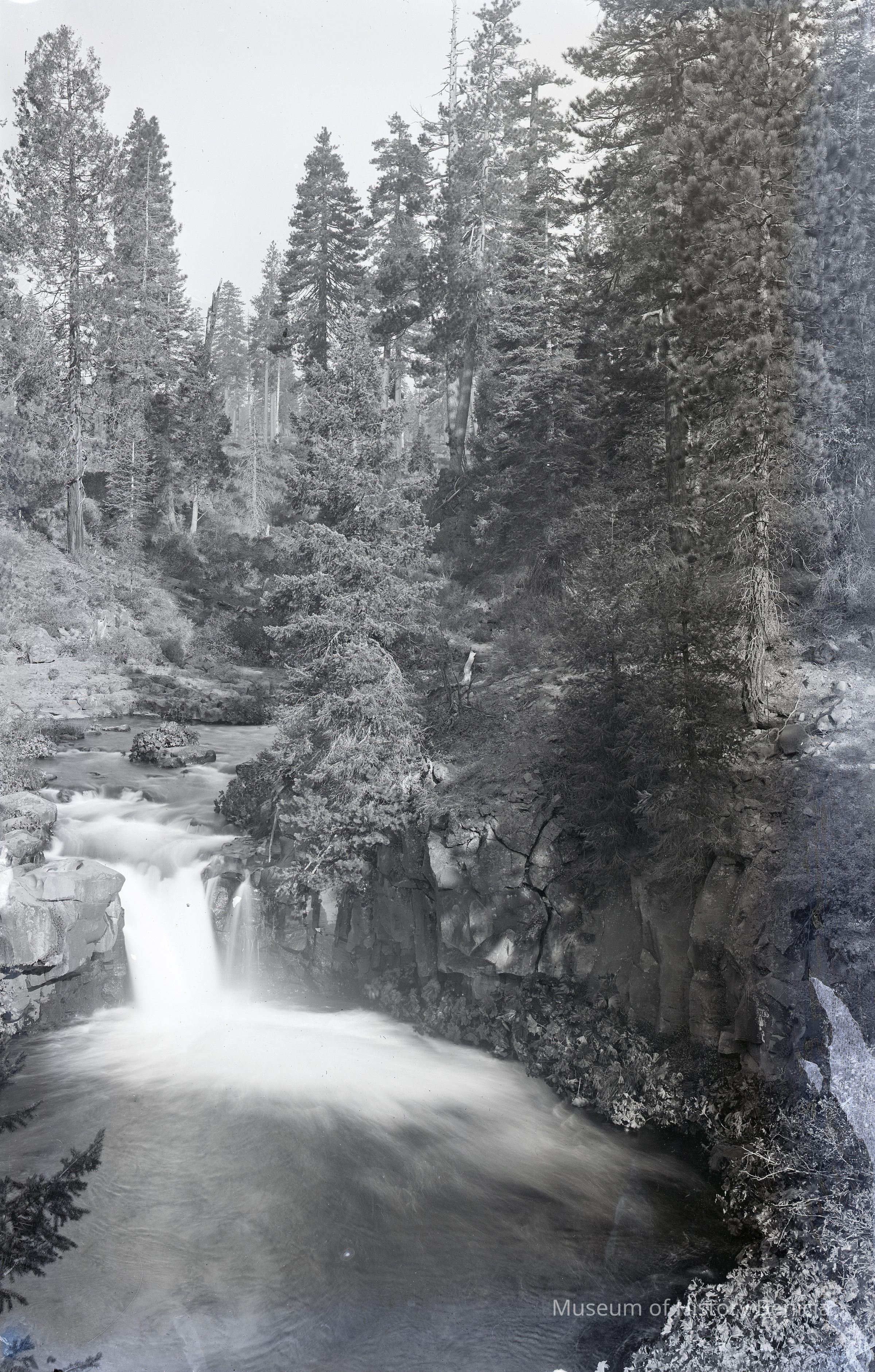 glass plate negative from plate box identified as "box 2" Shows a small waterfall and stream.