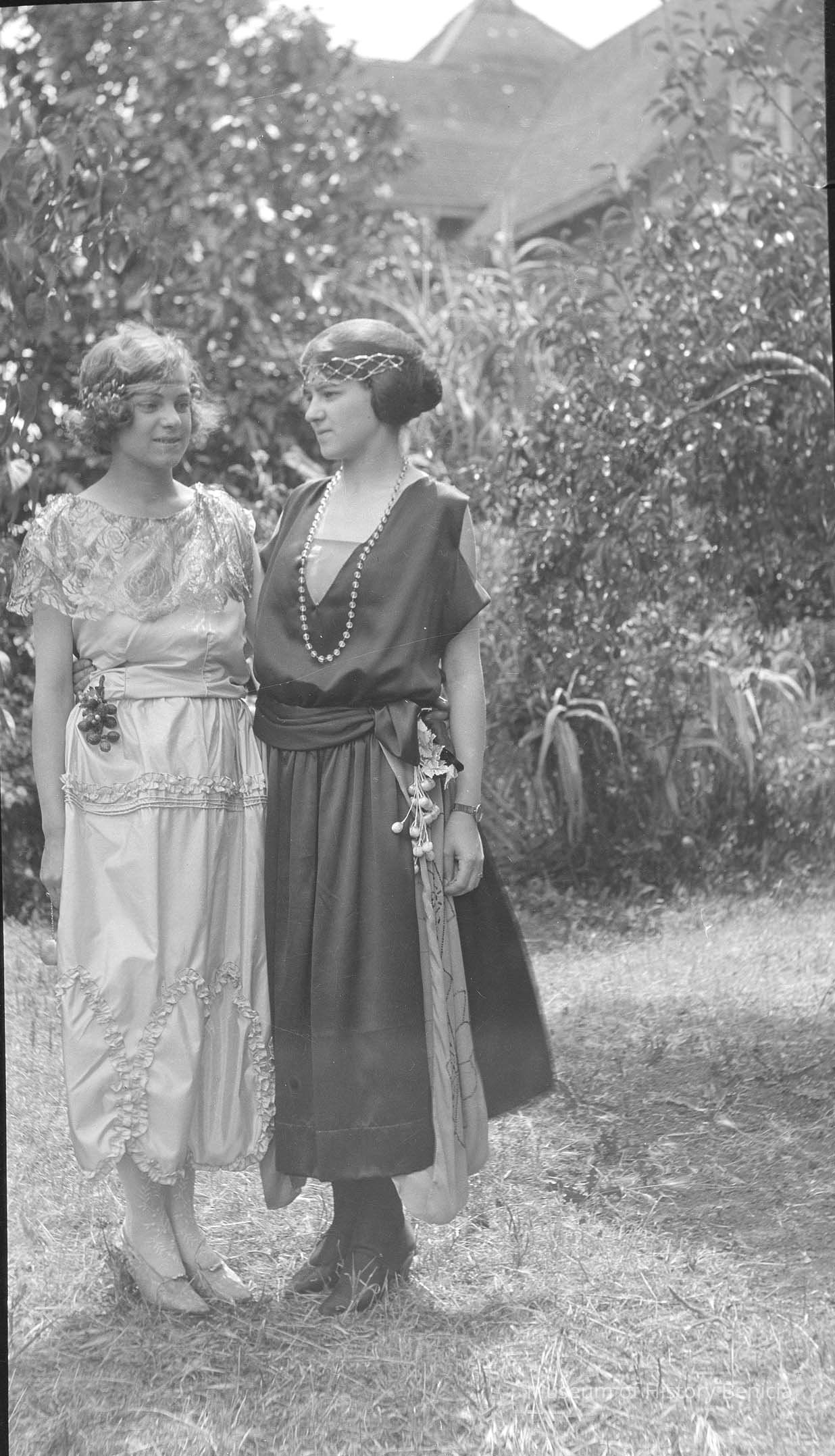 Negative of Violet and Marguerite Molfino in 1920's style costume.