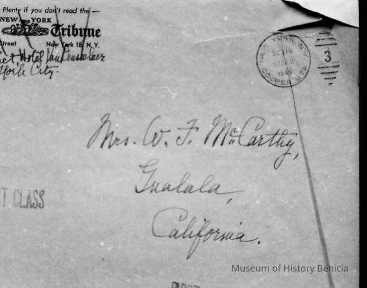 Negative of mailing envelope from Laura Benet with photo of Fachet wedding.