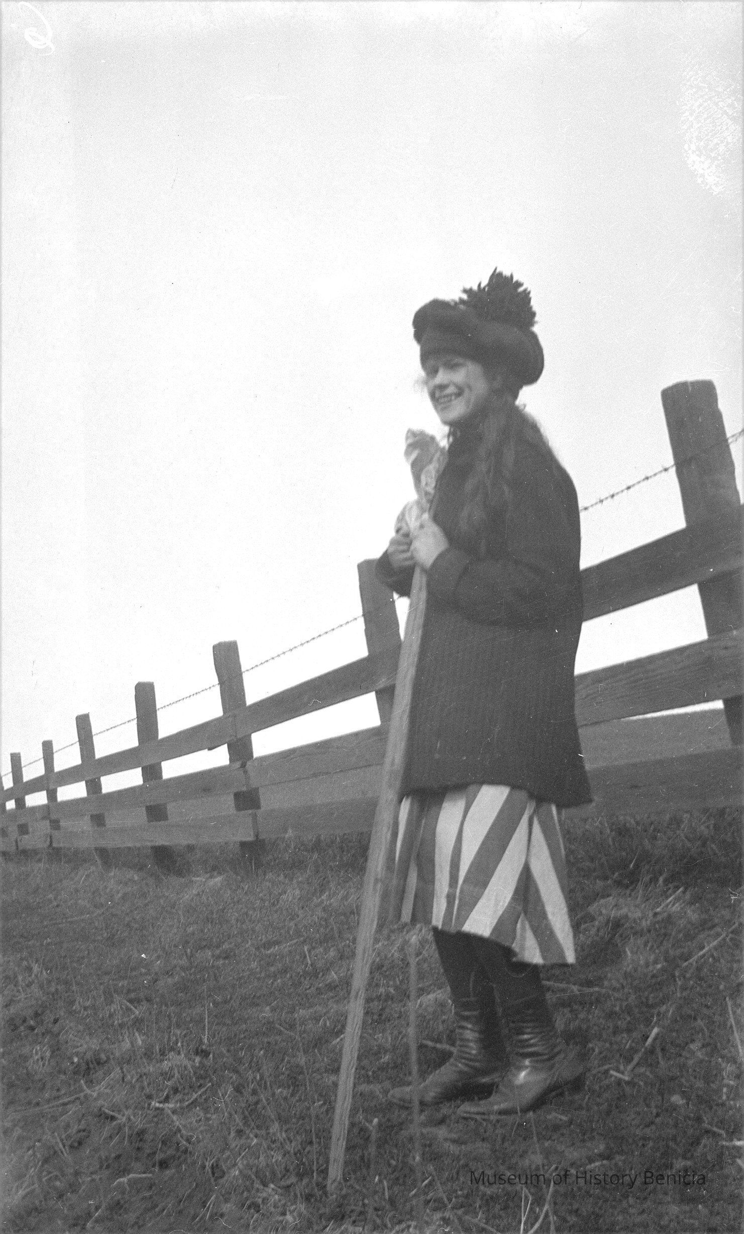 Negative of woman in the countryside. The envelope says "Hike to Waterwork Feb 2, 1919.