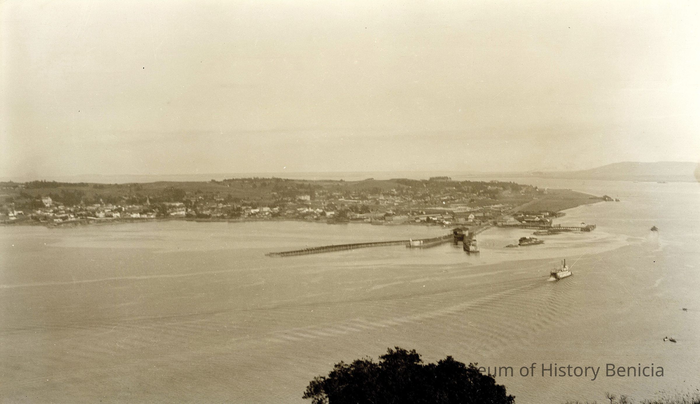 B/W Negative: Benicia from Port Costa. Shows train docks for ferry. No was print made per Tom Hosley