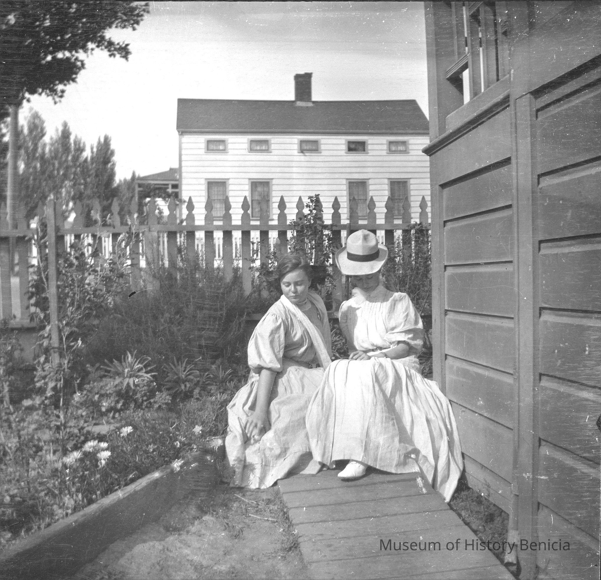 Negative of two women by a fence. In an envelope with "of Molfino" scratched out and "Manez" written on the front.