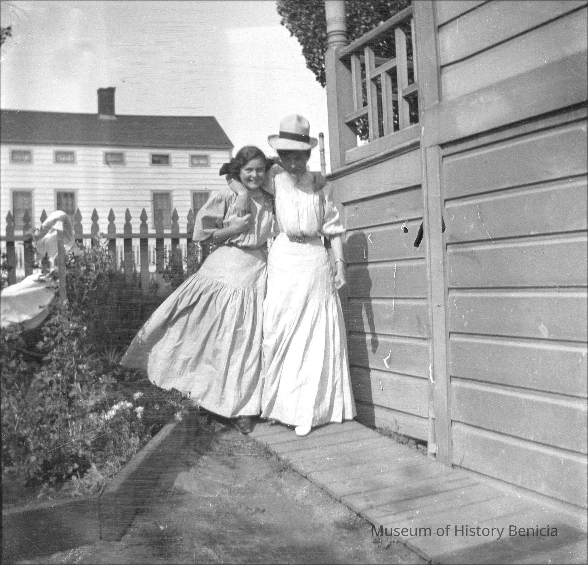 Negative of two women by an house. In an envelope with "of Molfino" scratched out and "Manez" written on the front.