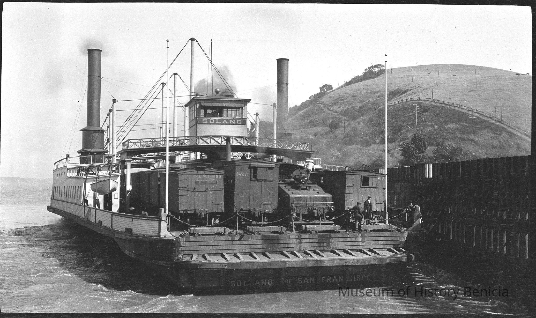 B/W negative. Mostly of the Ferry Boat Solano. This is the negative used for one of Frank Stumm's colorized postcards. See item 1994.003.0076.Collection