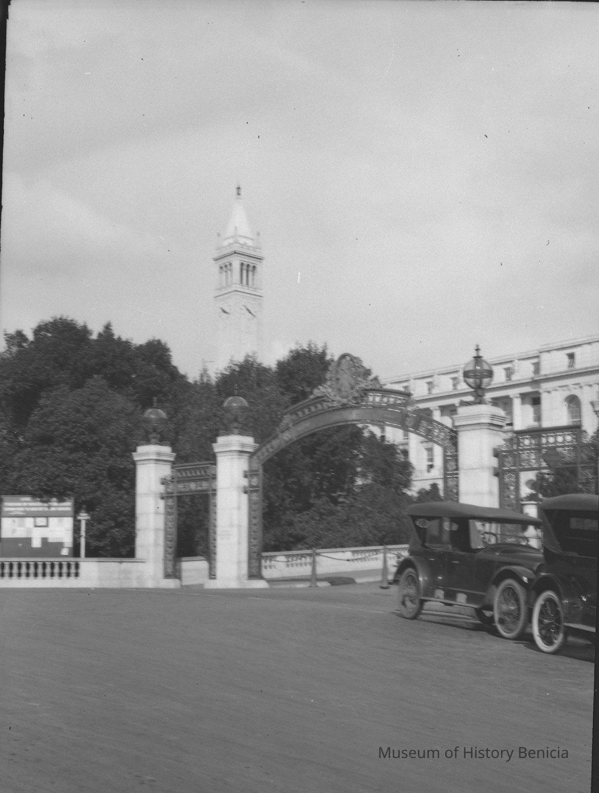 Negative 3.25 x 5.5 from Negative album 1993.003.0158. This is the negative listed in the index as: #60 - Sather (?) Gate & Campanile