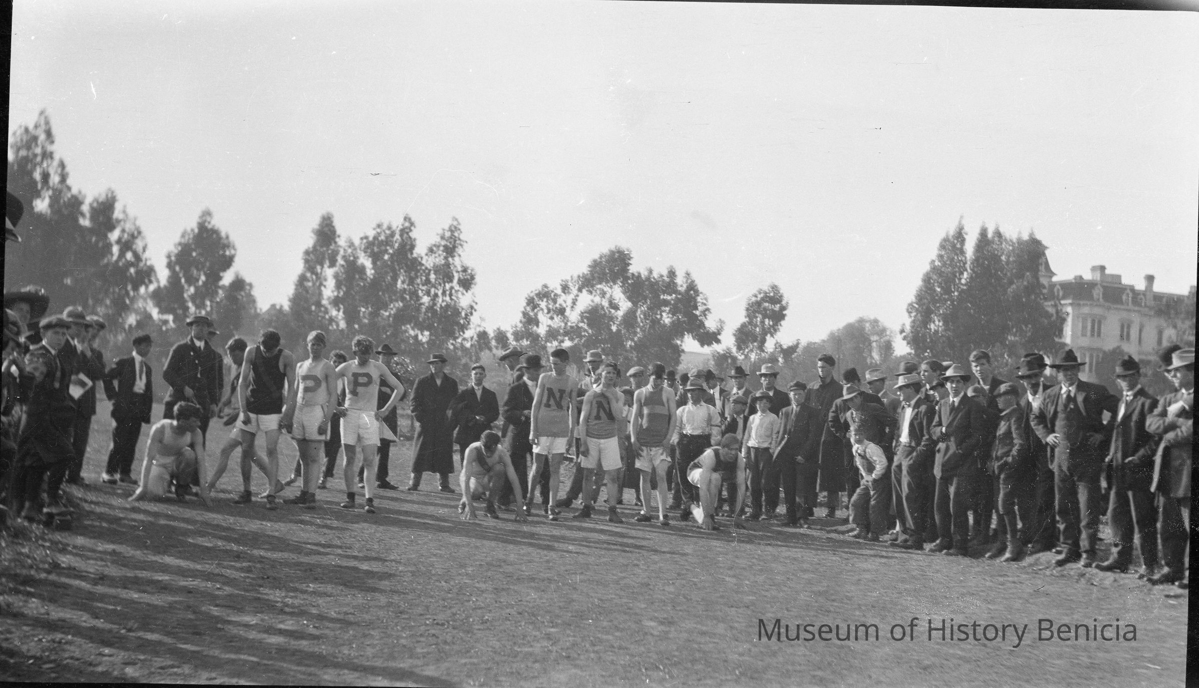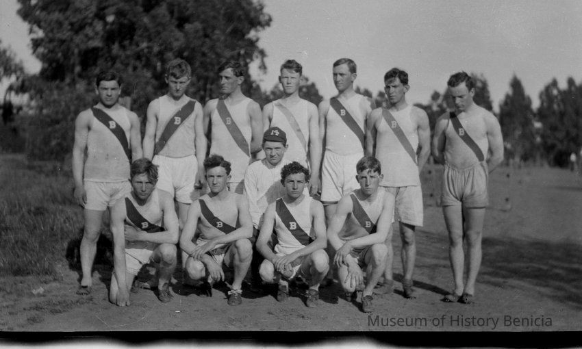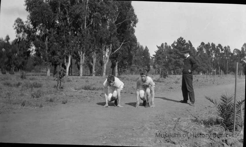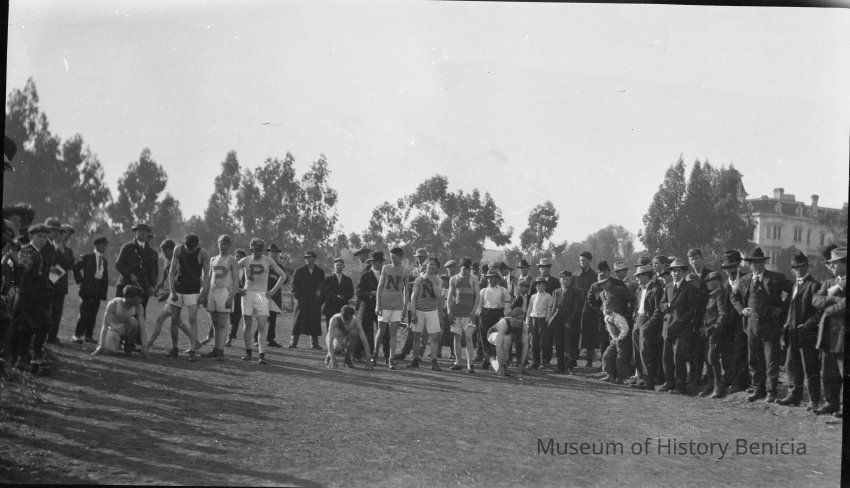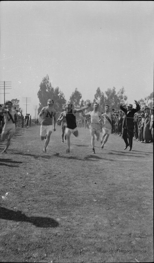 B/W Track meet photos. Benicia High School students.