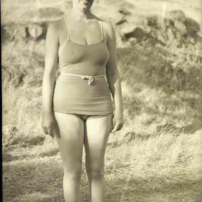 This is negative of a woman wearing a swimsuit.