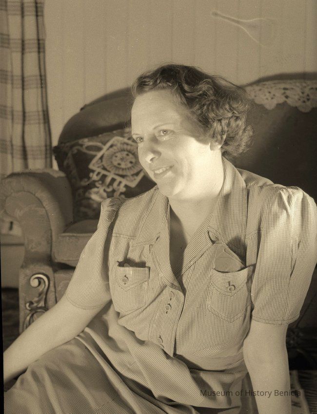 This is negative of a woman sitting in a chair. She looks to be the same woman as in 2014.011.0238.