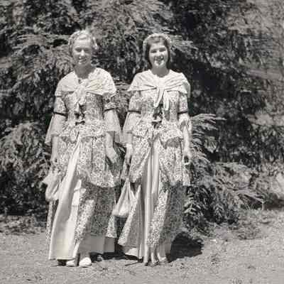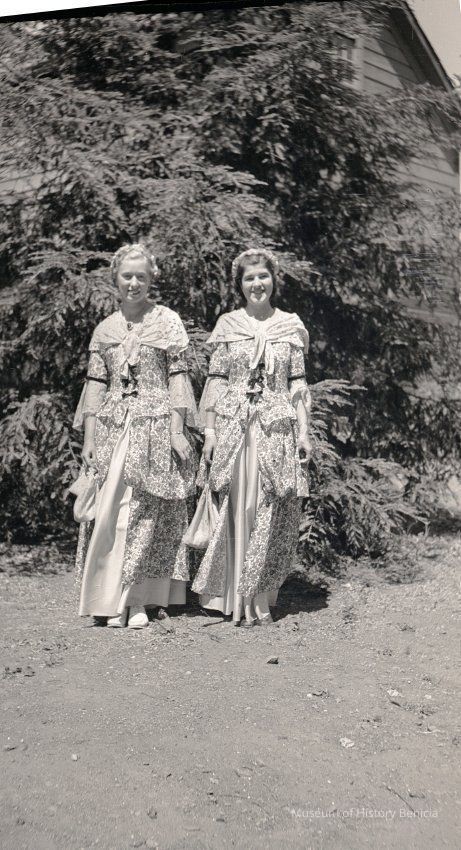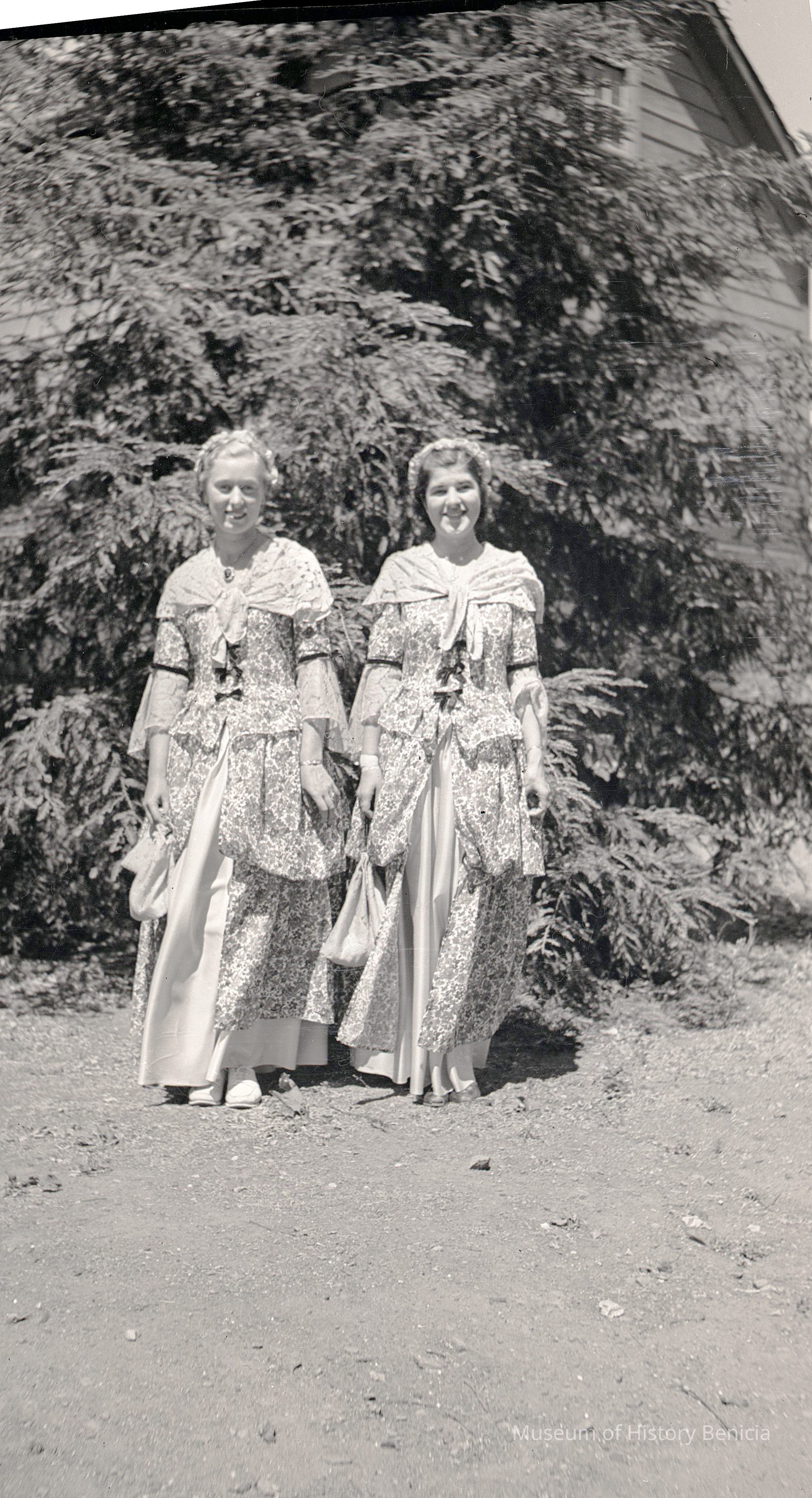 This is negative of two women dressed in pioneer period costumes. Not sure of the event but maybe one of the '49er Days.