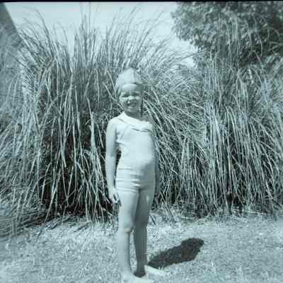 double negative showing two scenes. The first scene is - a girl in a swimsuit The second scene is - a Virgin Mary statue