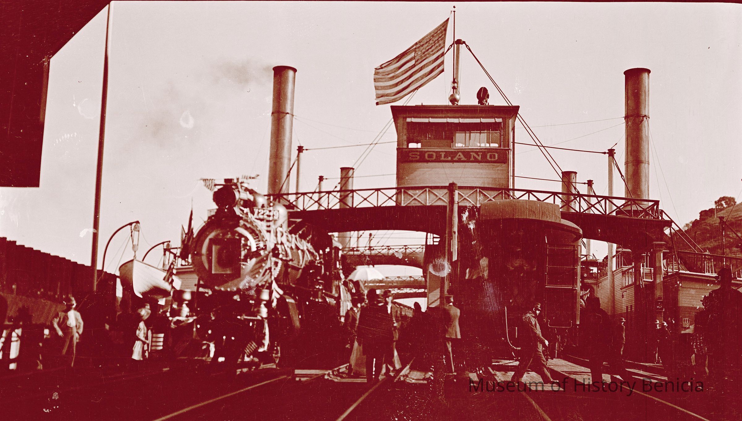 B/W Photograph: Presidential train for candidate Howard Taft on whistle stop tour of California. Train being loaded on ferry "Solano".