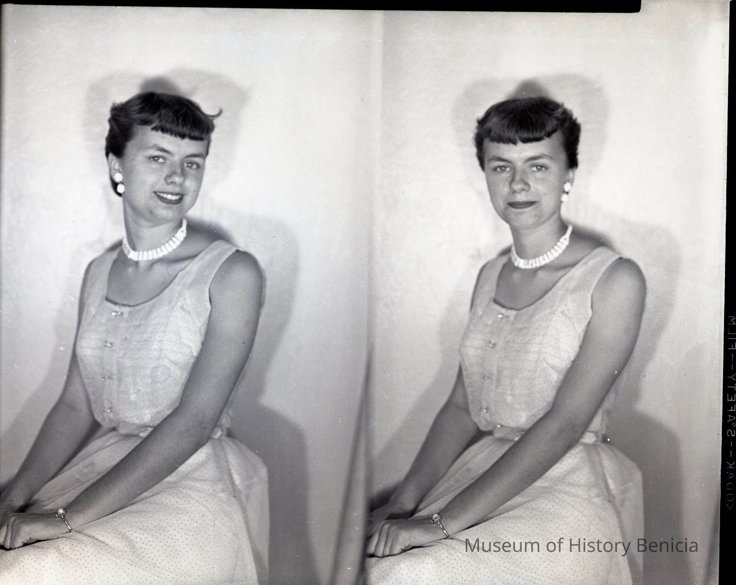 Photo of a young woman. She is posed and this may be a photo of canidates for contestants in the Old Timers celebration. Name unknown.
