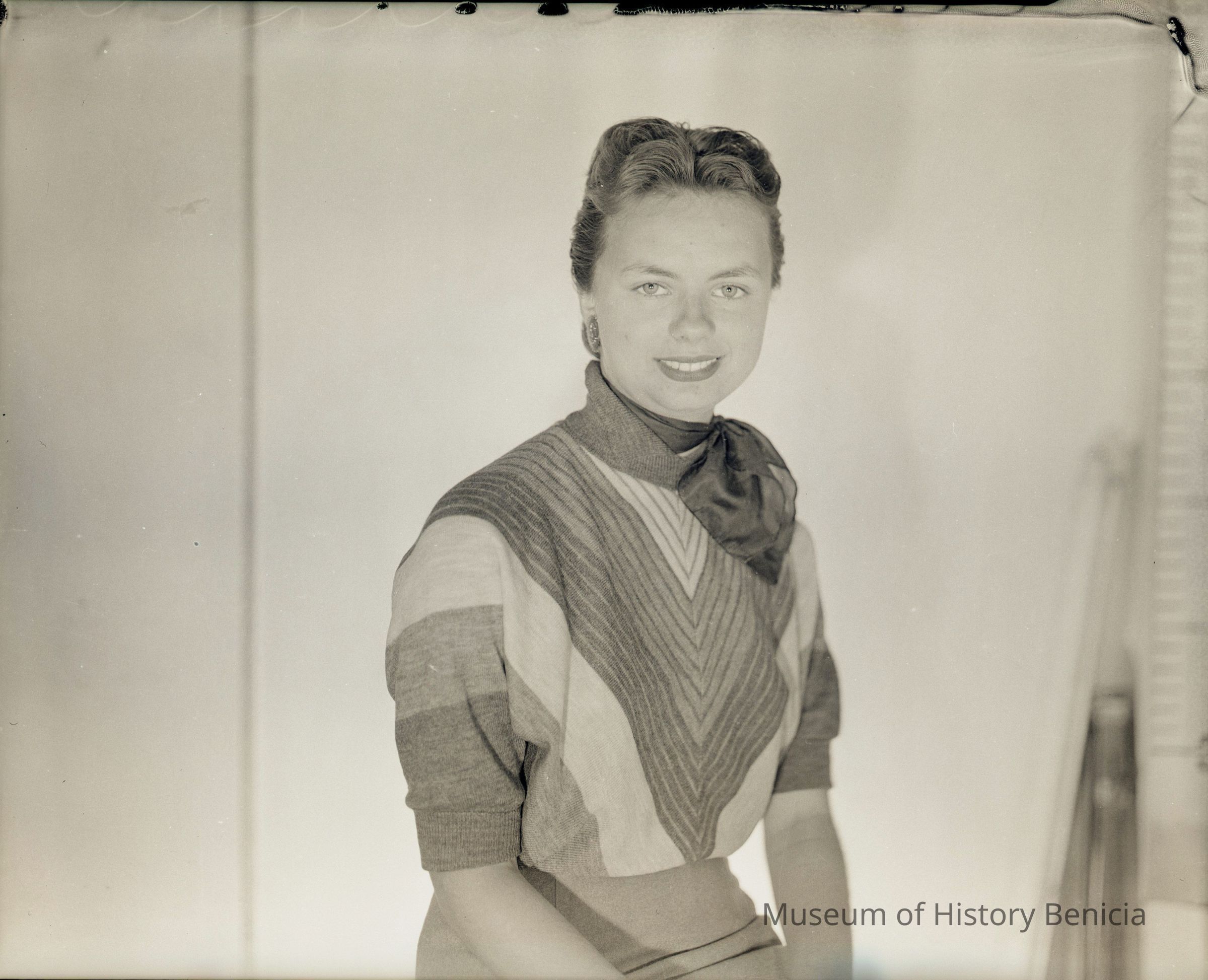 Photo of a young woman. She is posed and this may be a photo of canidates for contestants in the Old Timers celebration. Name unknown.Collection