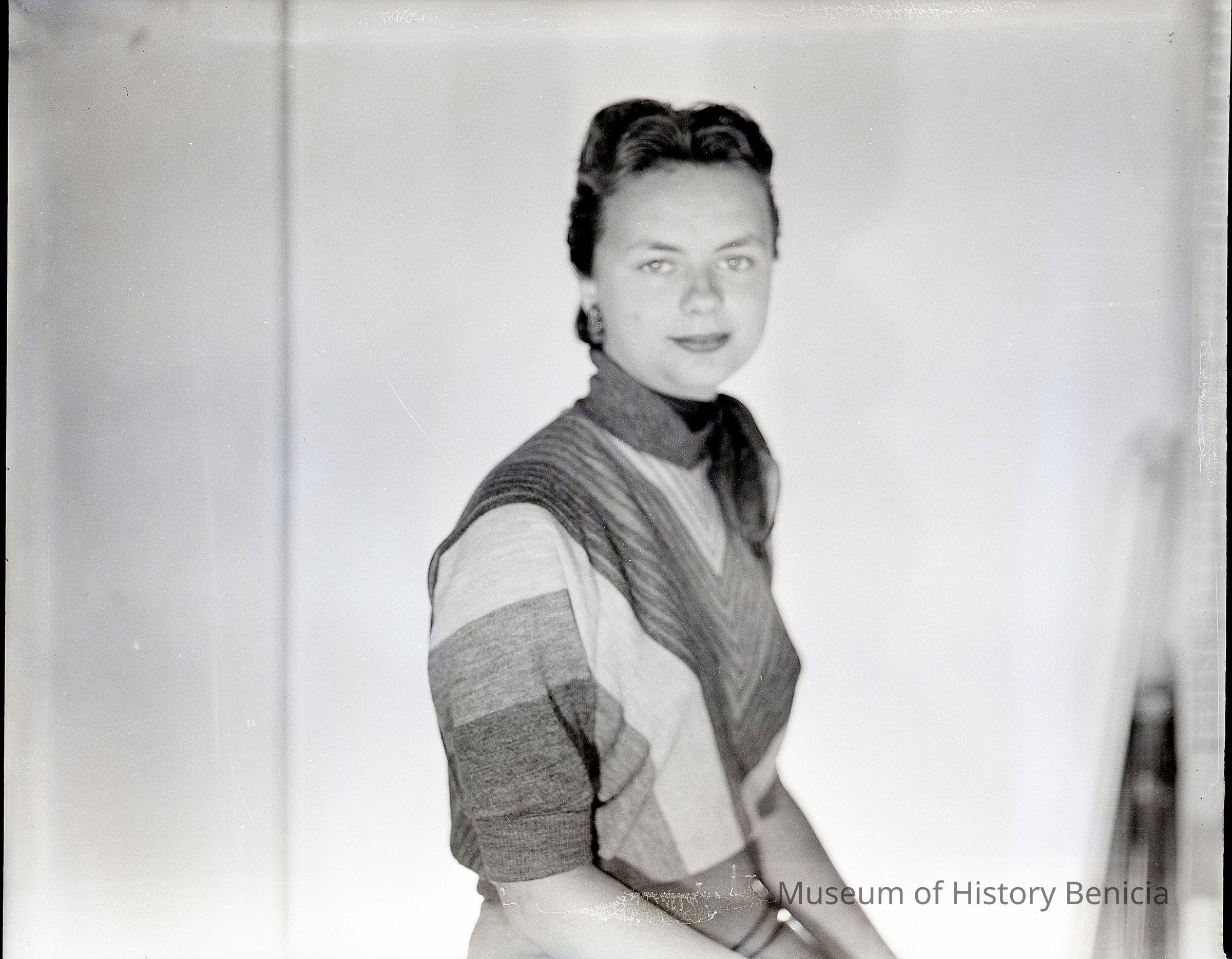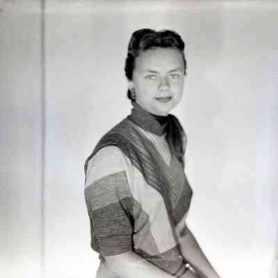 Photo of a young woman. She is posed and this may be a photo of canidates for contestants in the Old Timers celebration. Name unknown.Collection
