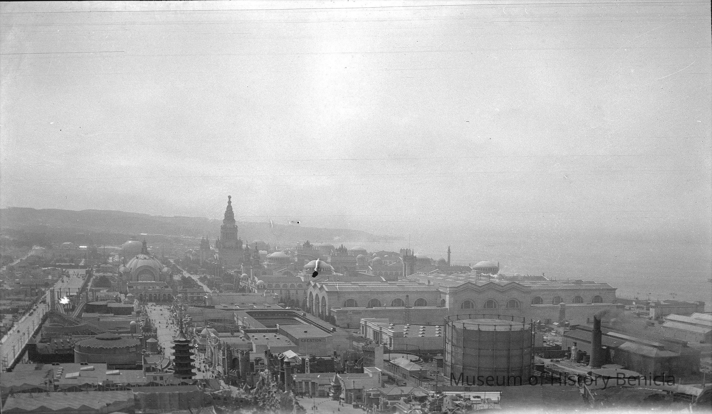Negative of an overview of the 1915 Panama Pacific International Exhibition in San Francisco.