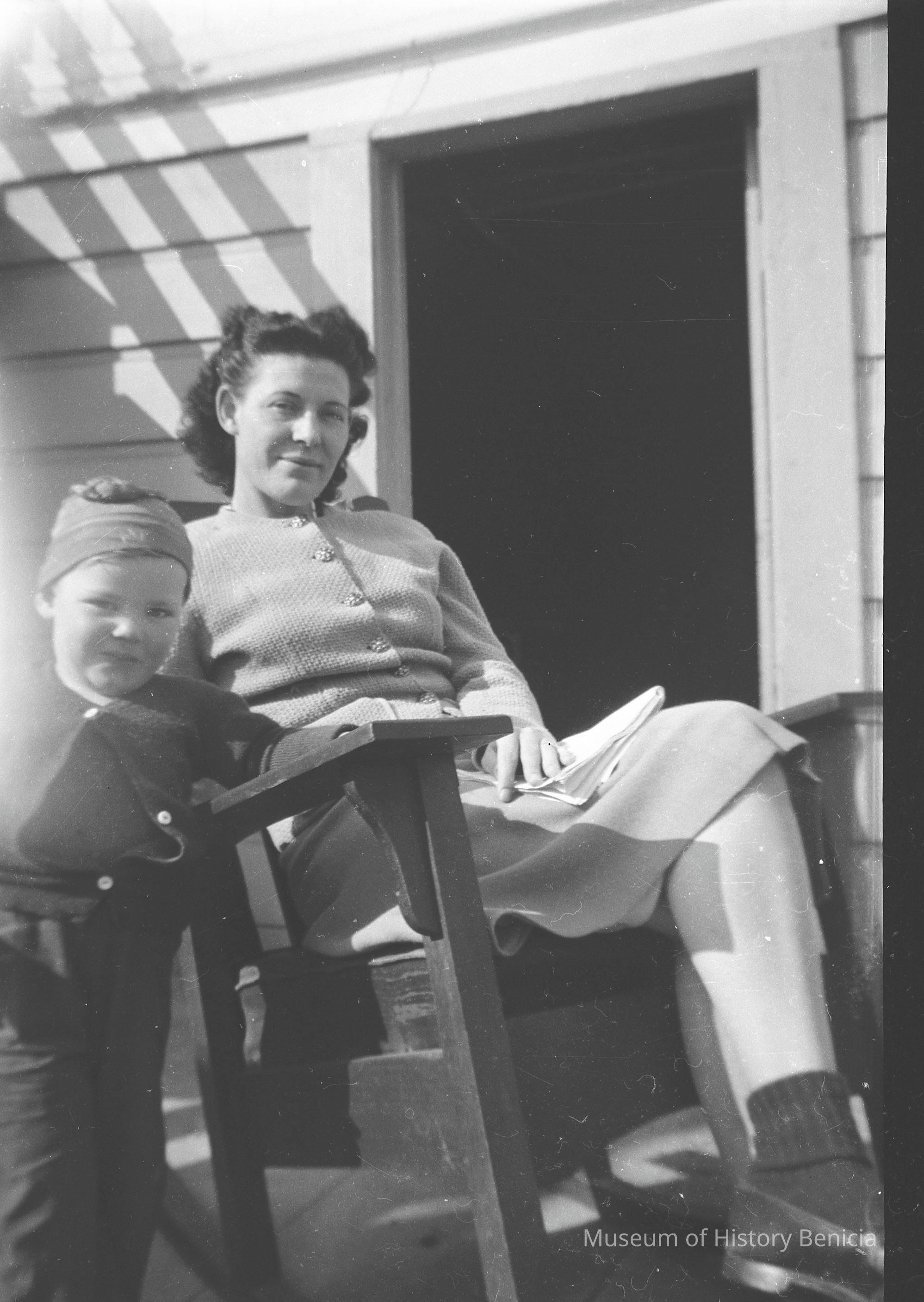 This is two photos on a single strip negative. Both images are of a mother in a rocker with her child.