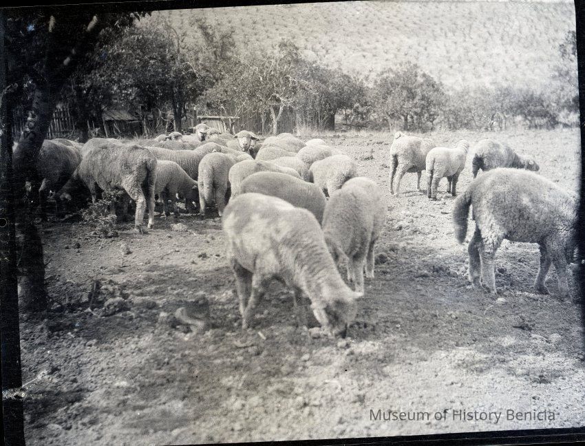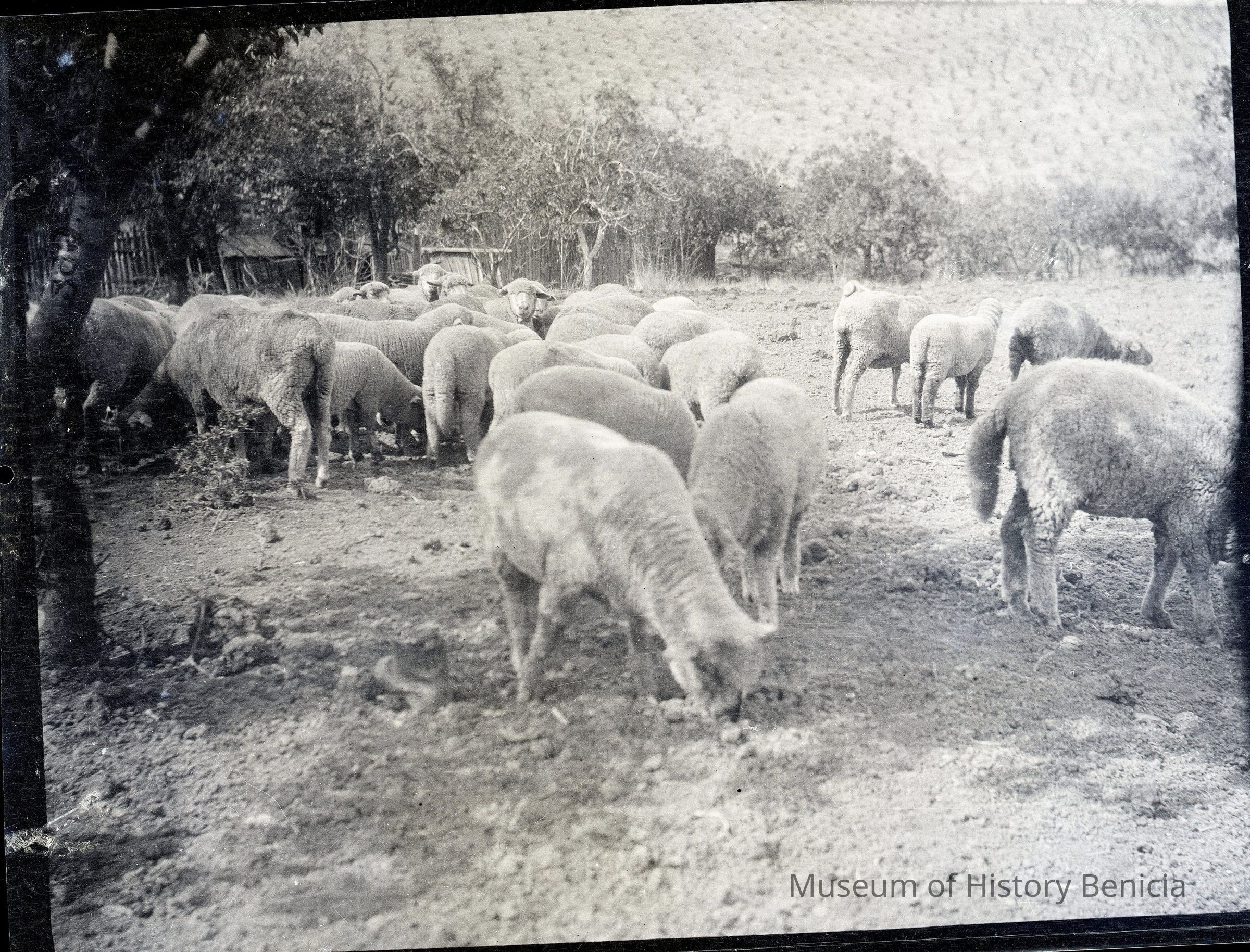 B/W Negative: appears to be sheep grazing in an enclosed area