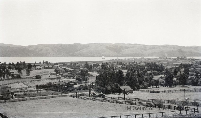 B/W Negative: view of early Benicia looking towards Strait