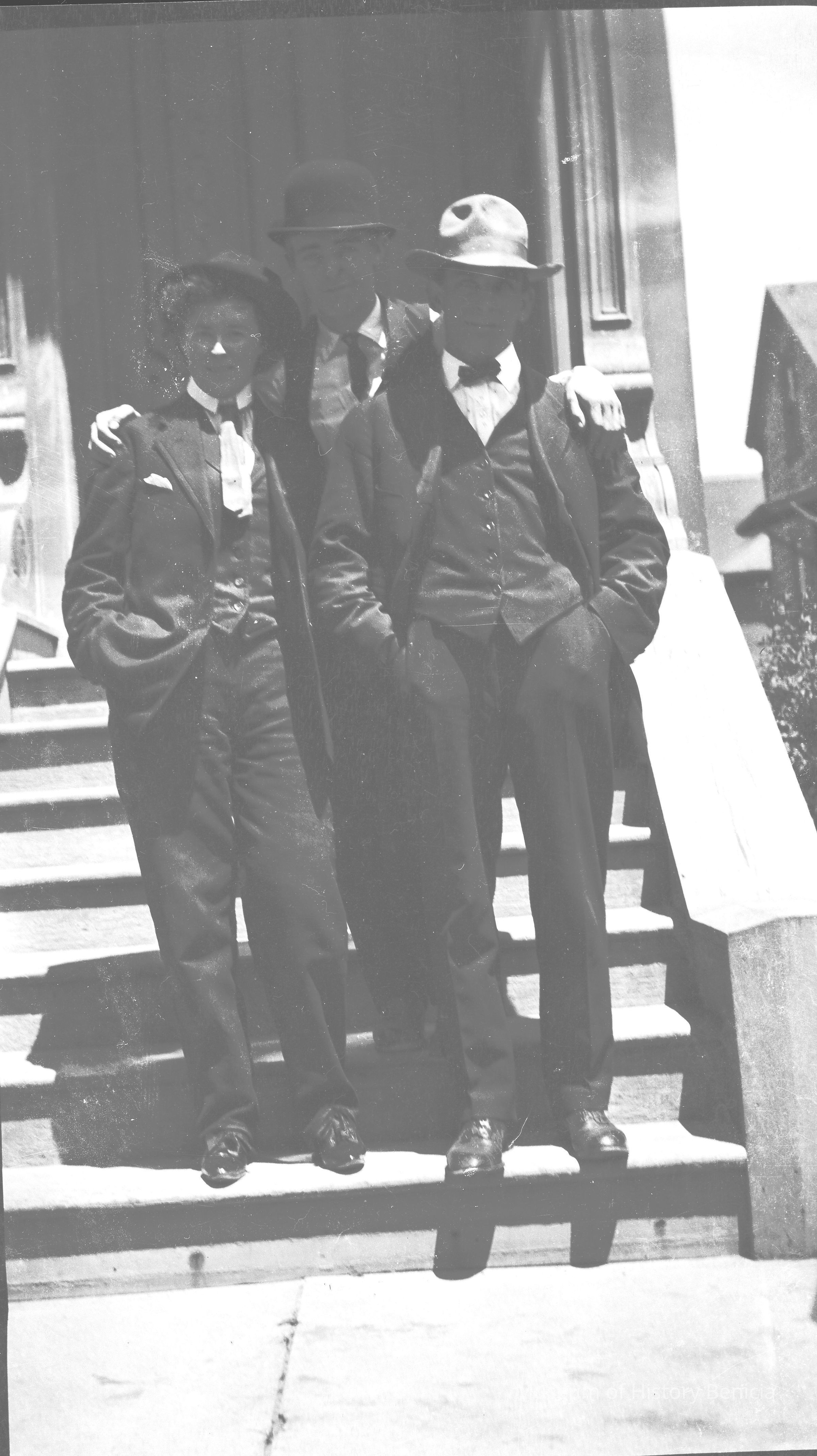 This is a photo of three people on their front steps.