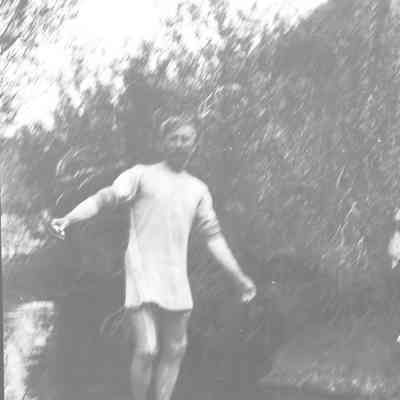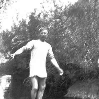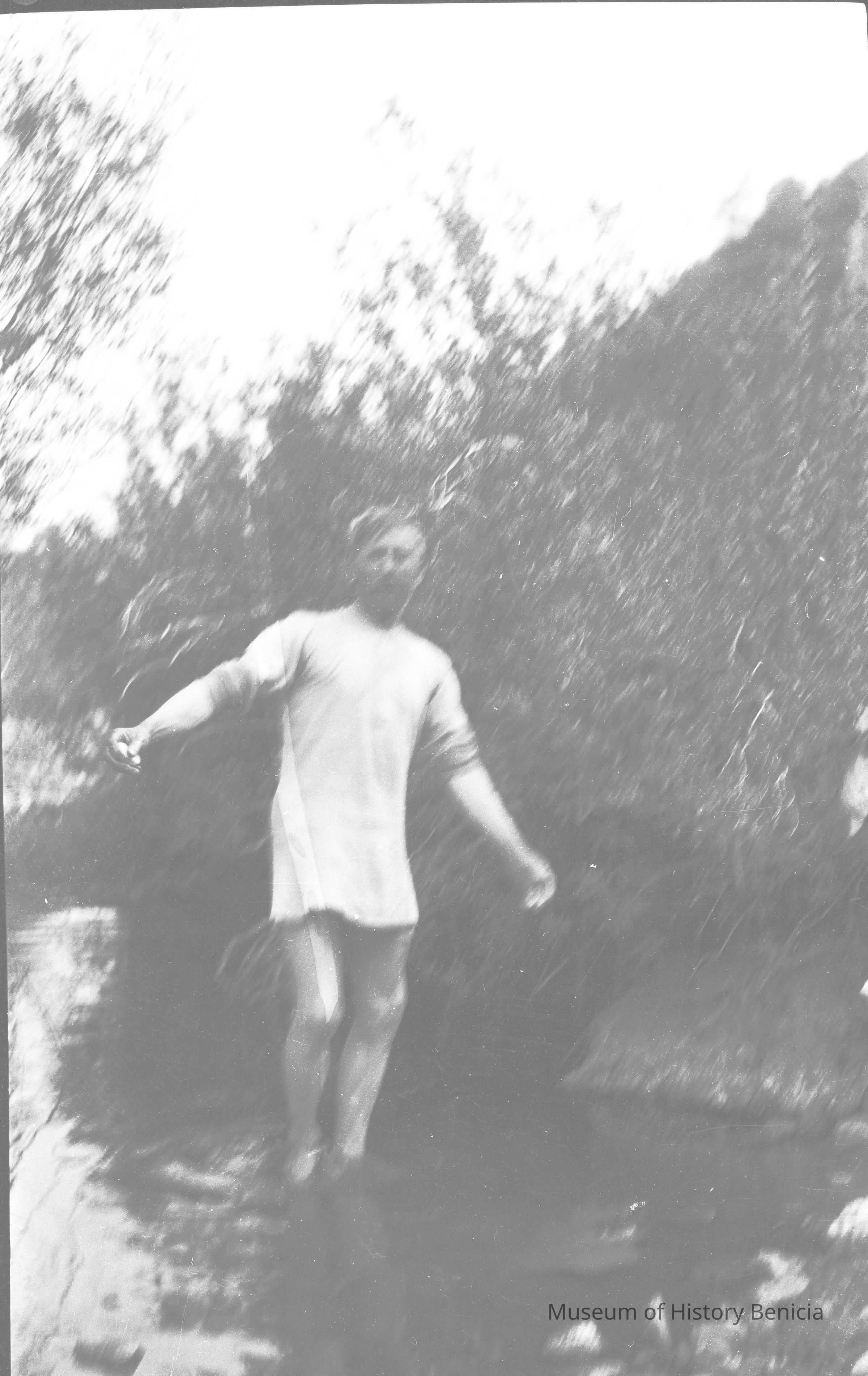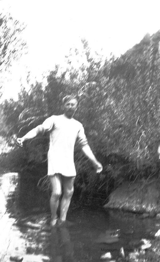 Man in a stream may be without pants.
