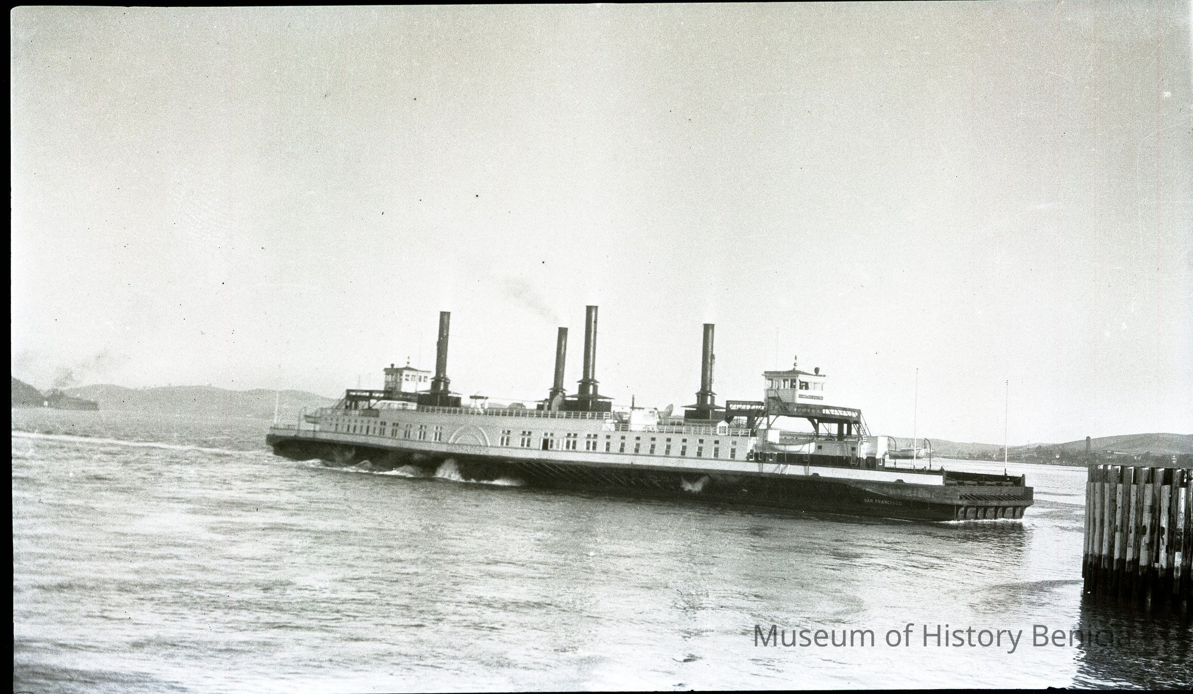 This negative is of the ferry Contra Costa leaving the dock.Collection
