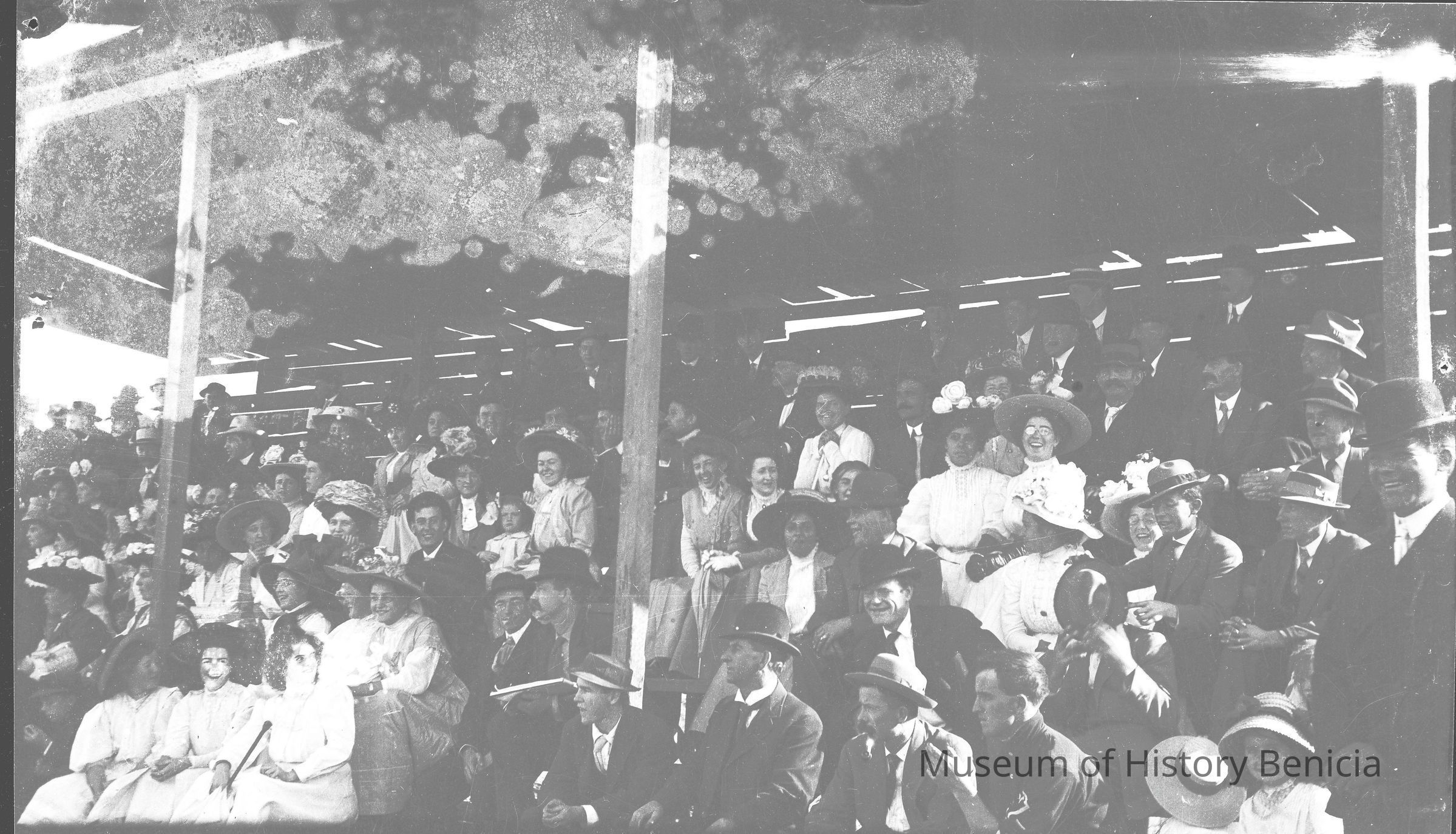 This is a photo of people in the stands at a Benicia baseball game.