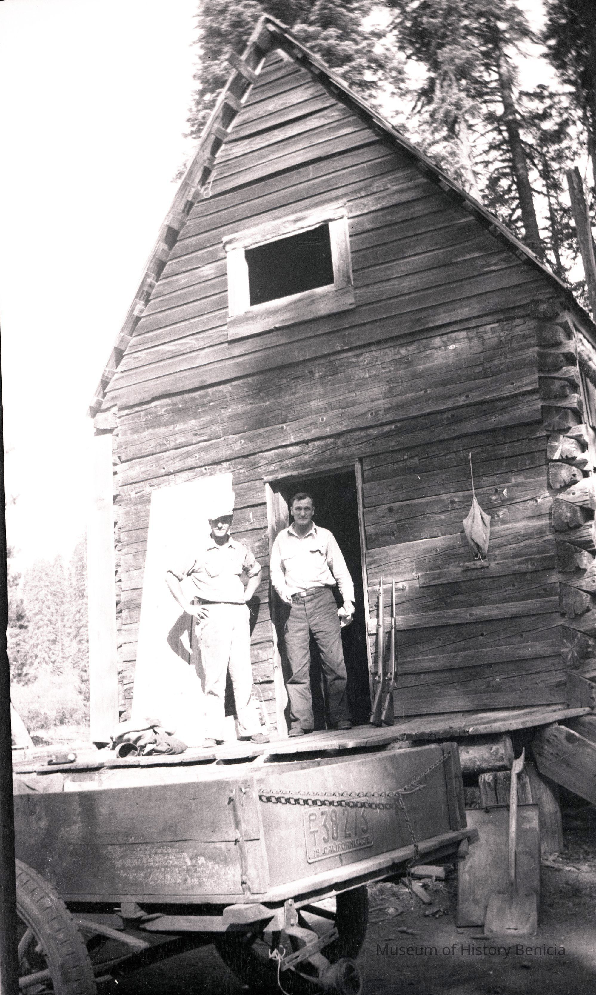 men at cabin