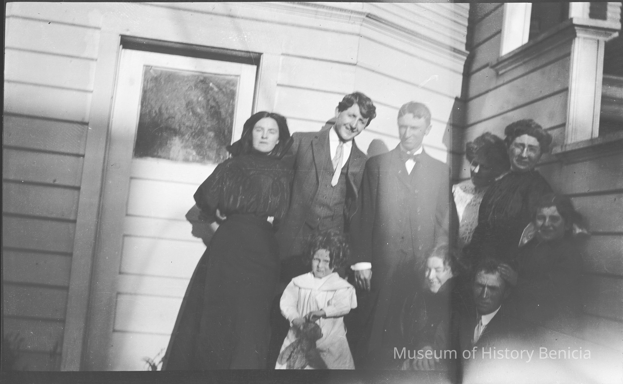 This is a photo of a group of 9 people. The little girl with the bear is in the photo (see 2017.030.1244).