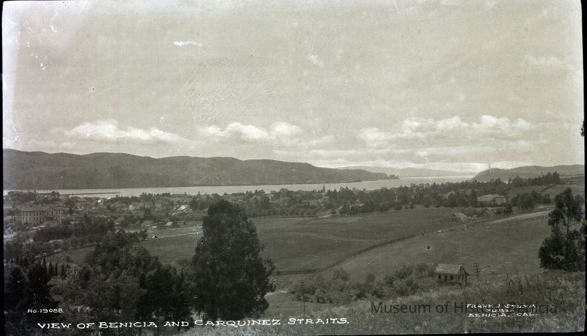 printed on the negative is No. 19088 View of Benicia and Carquinez Straits, Frank J. Stumm, Publ. Benicia, CalCollection