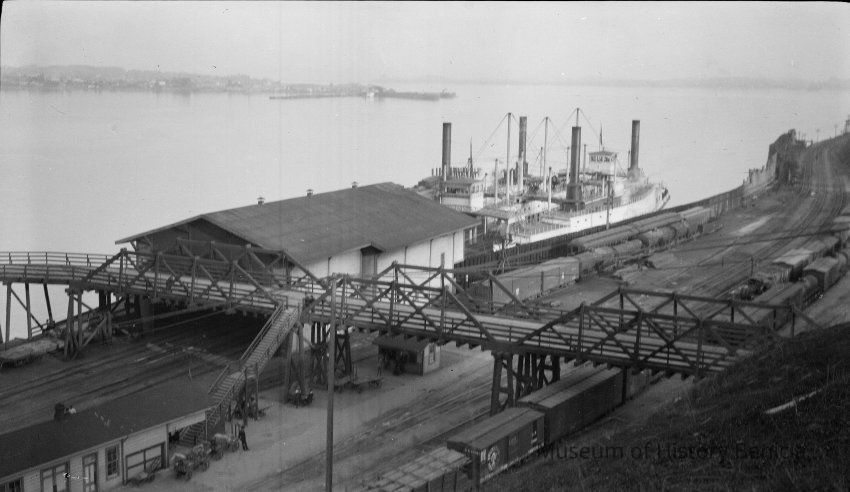This is a photograph of the railroad yards in Port Costa .
