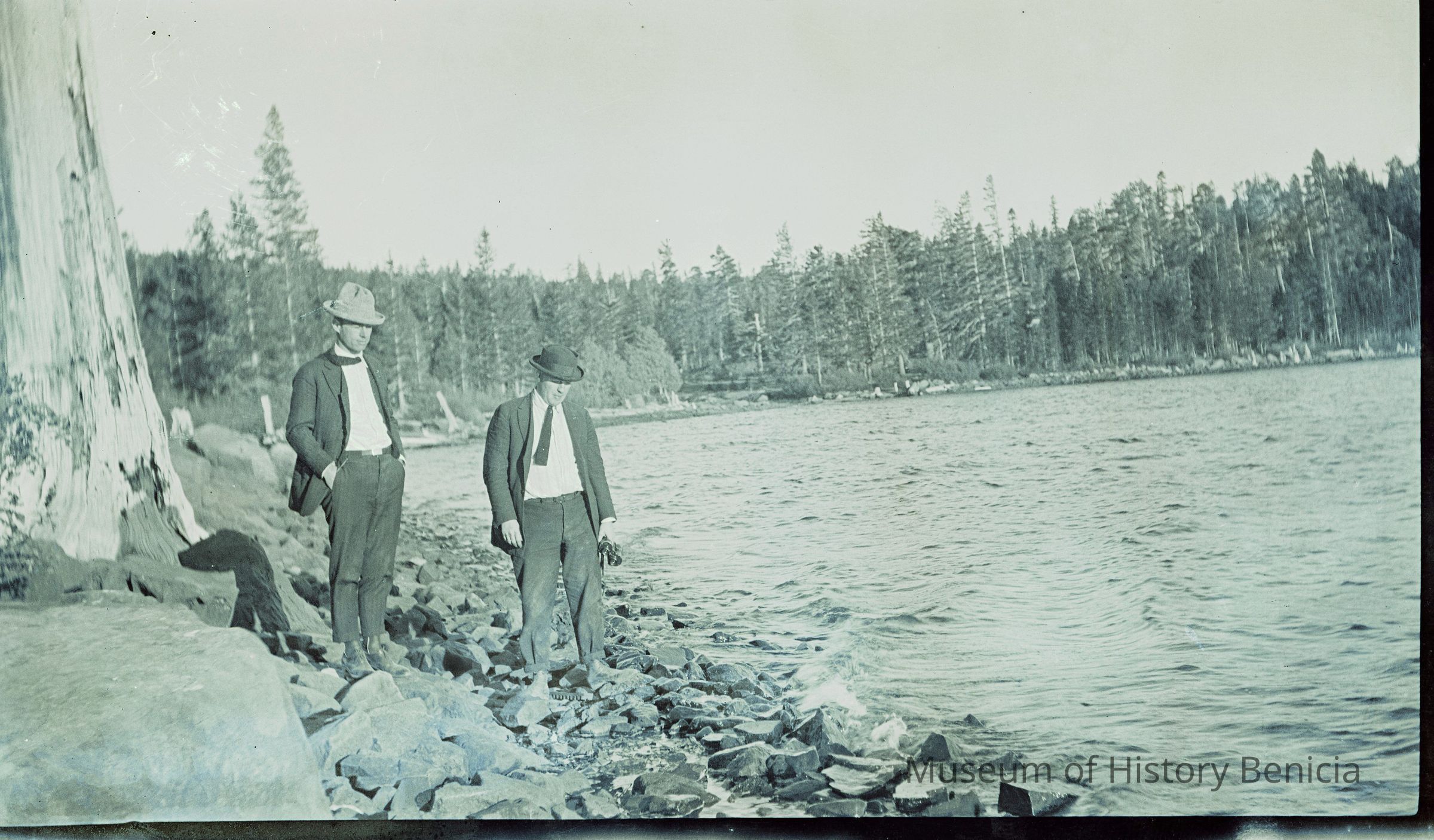 This negative shows actors from a movie shot in the Truckee area. The date is about 1910-1920. Not sure of the movie but the Truckee History Center lists dozens of movies that were shot in that area. Can't identify the actors.Collection