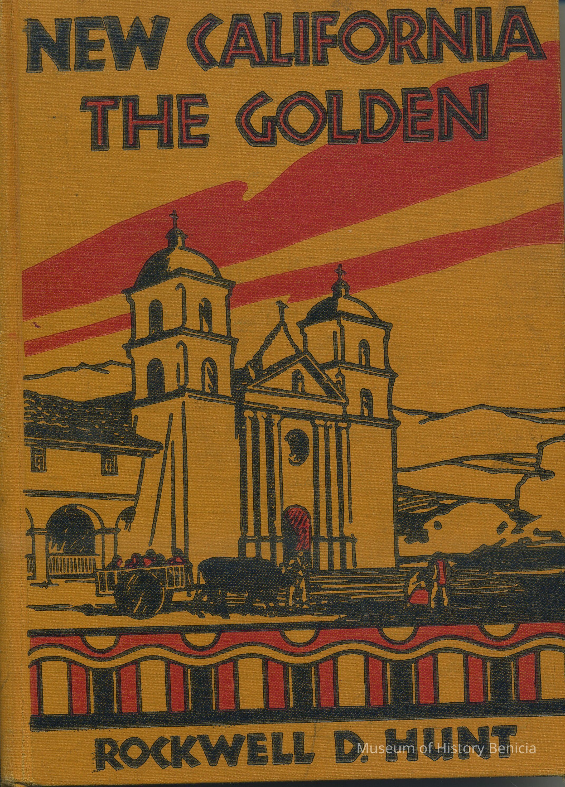 hardbound - mustard yellow/red/black on front a drawing of a California Mission