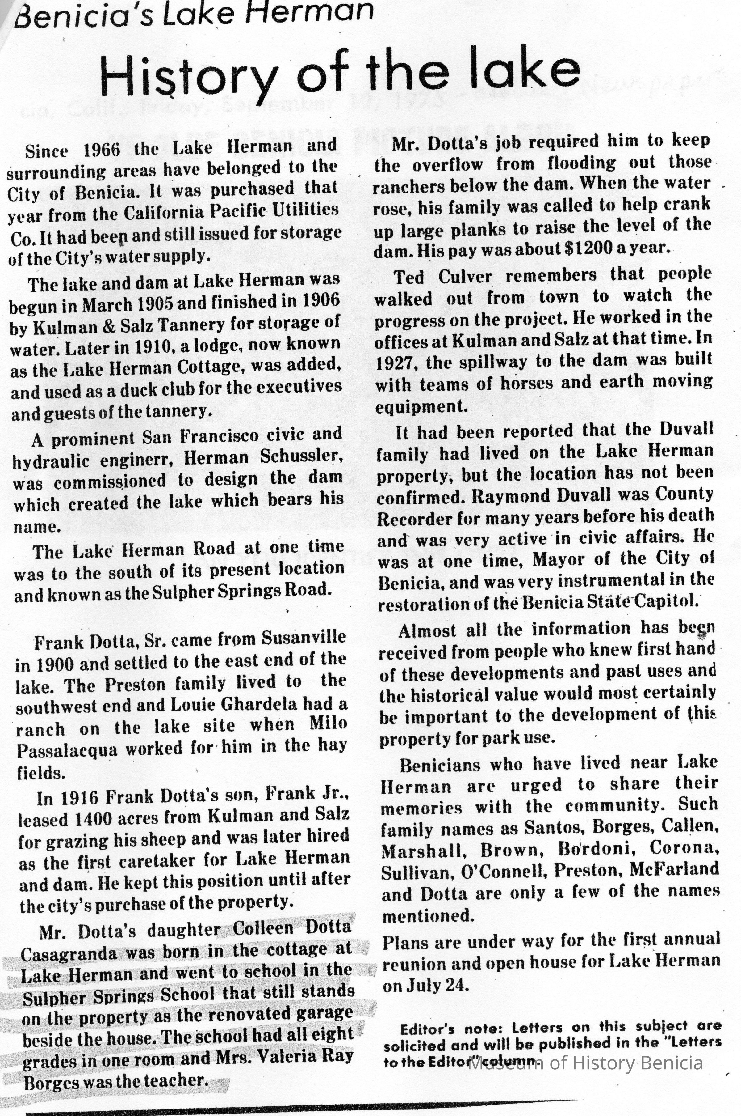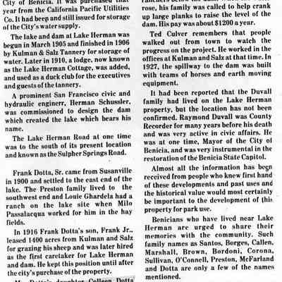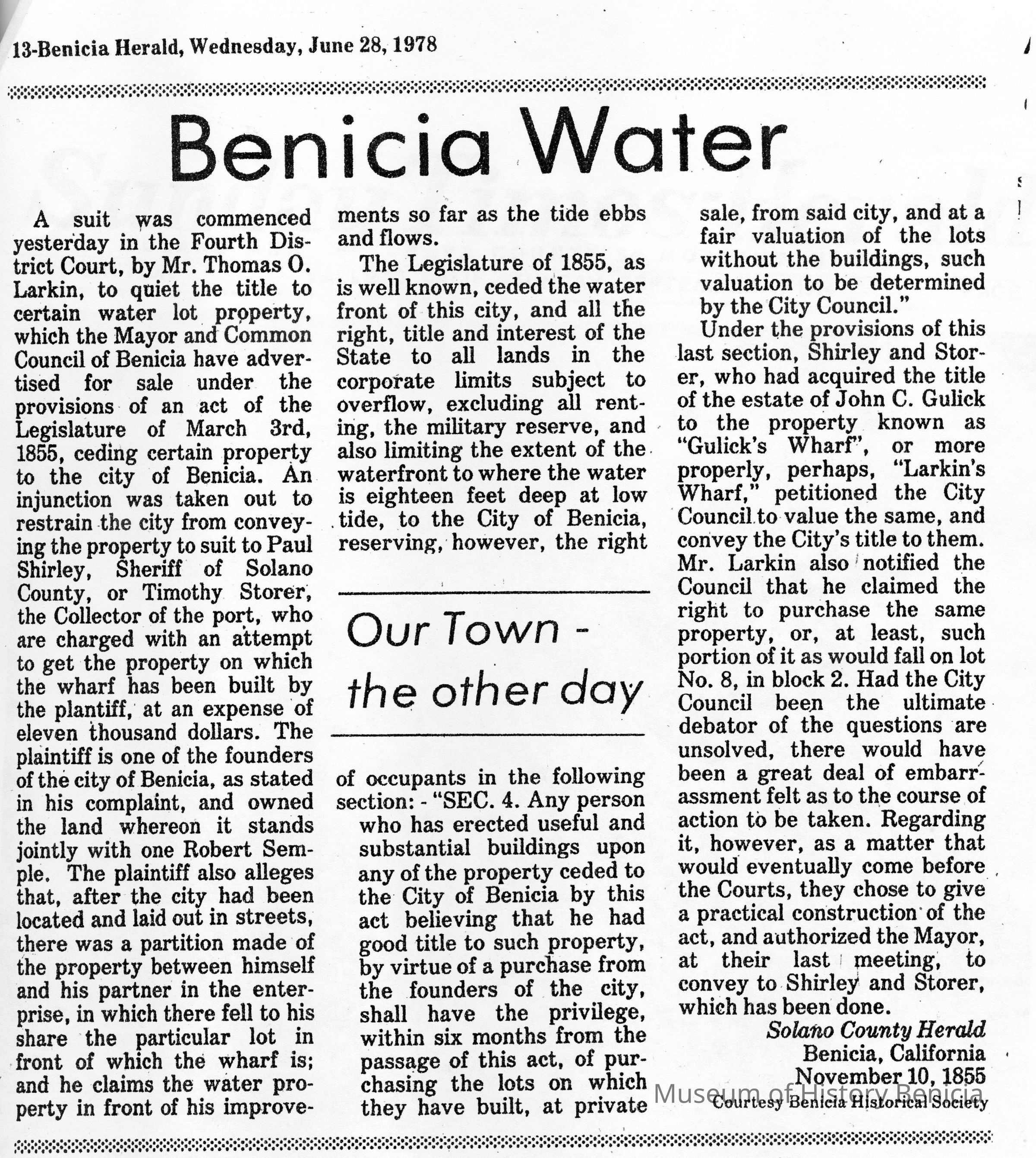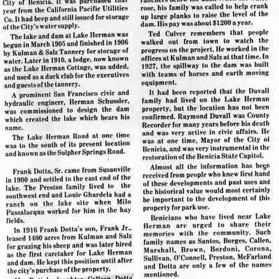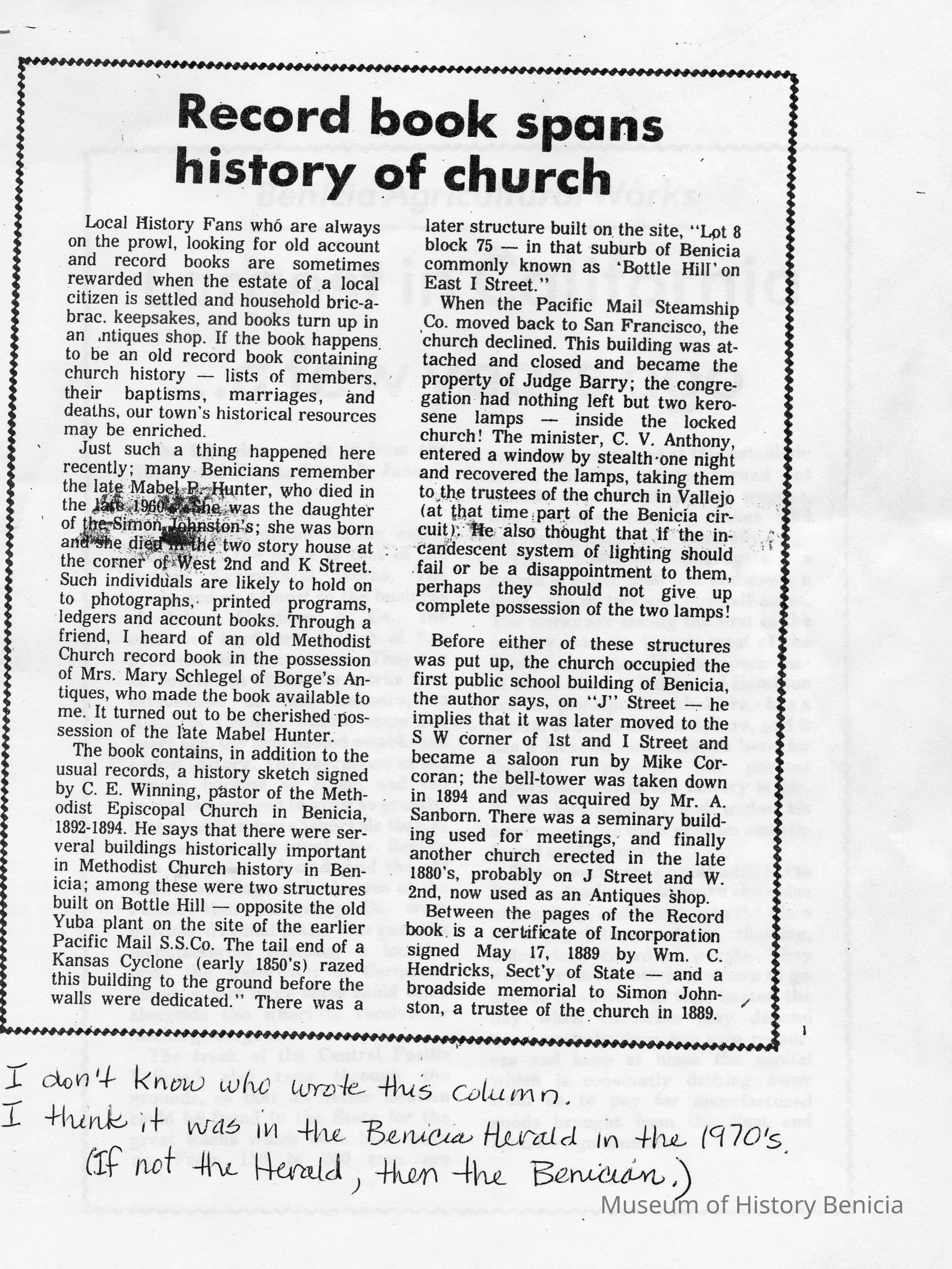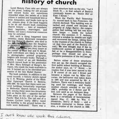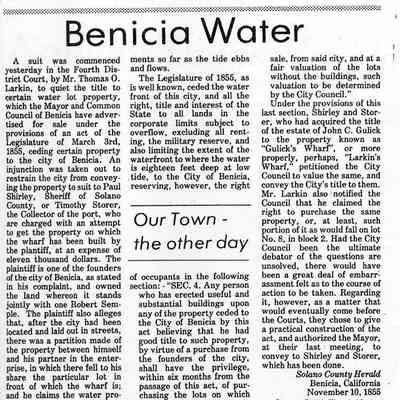 Copies of material about Benicia taken from newspapers (10 pages). Articles include: