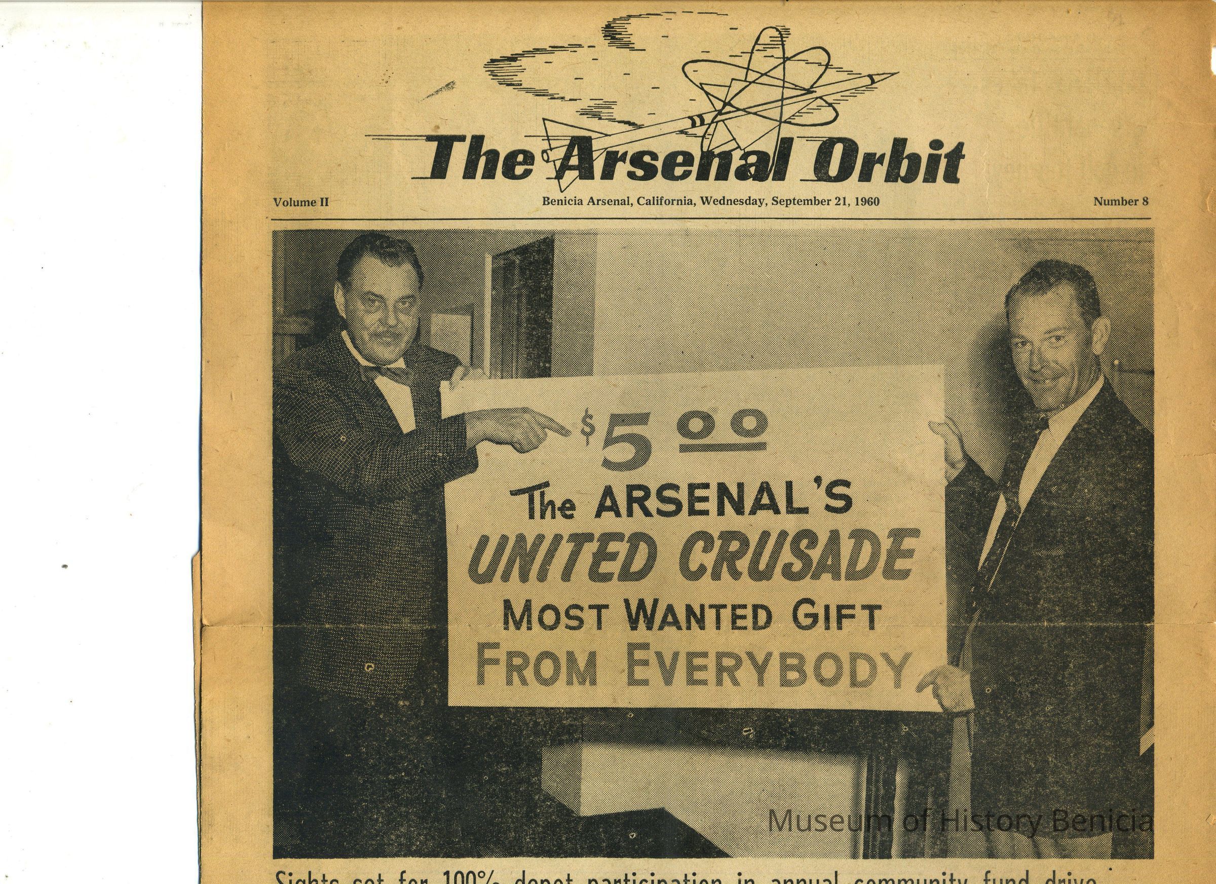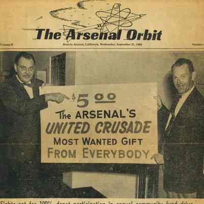 Articles: Community Fund Drive/ United Crusade; Post Fire- Fighters program; Arsenal; Golf Tournament; three b/w photographs of employees receiving awards; Arsenal Camera Club; Ordnance Ladies festivities with b/w photograph of ten members of the association; "Chit Chat" Column of employee activities; Retiring employees party; b/w photograph of Arsenal drivers with safe driving records; want ads ( houses, cars, boats and some smaller items).Collection