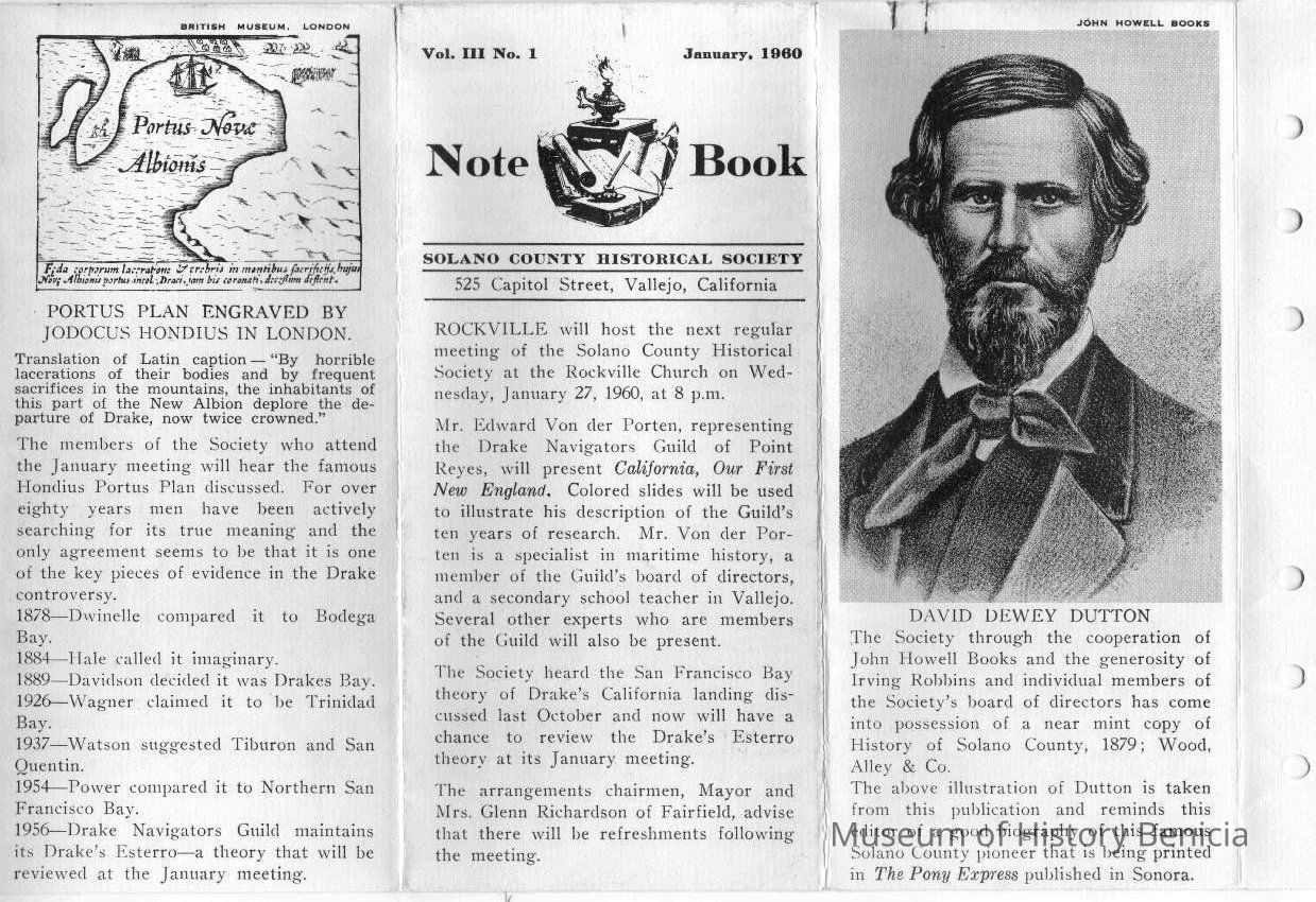 Notebook from the Solano County Historical Society at 525 Capitol Street, Vallejo, CA.