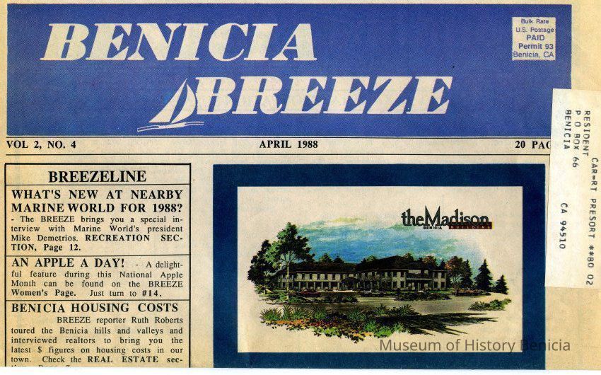 Newspaper: Benicia Breeze P.O. Box 650 Benicia CA 94510 Vol. 2, No. 4 - April 1988 - 20 pages size: 14" length x 11-3/4" width