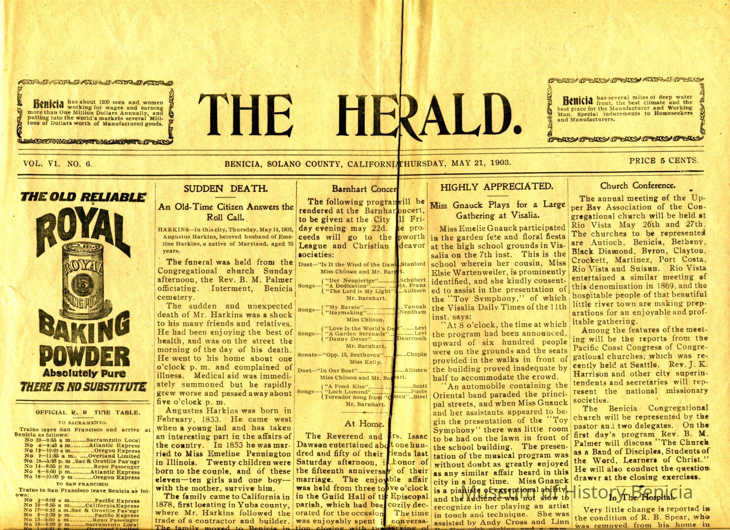 Newspaper: The Herald Vol. 1, No. 6 - May 21 1903 - 8 pages size: 14" length x 11-3/4" width