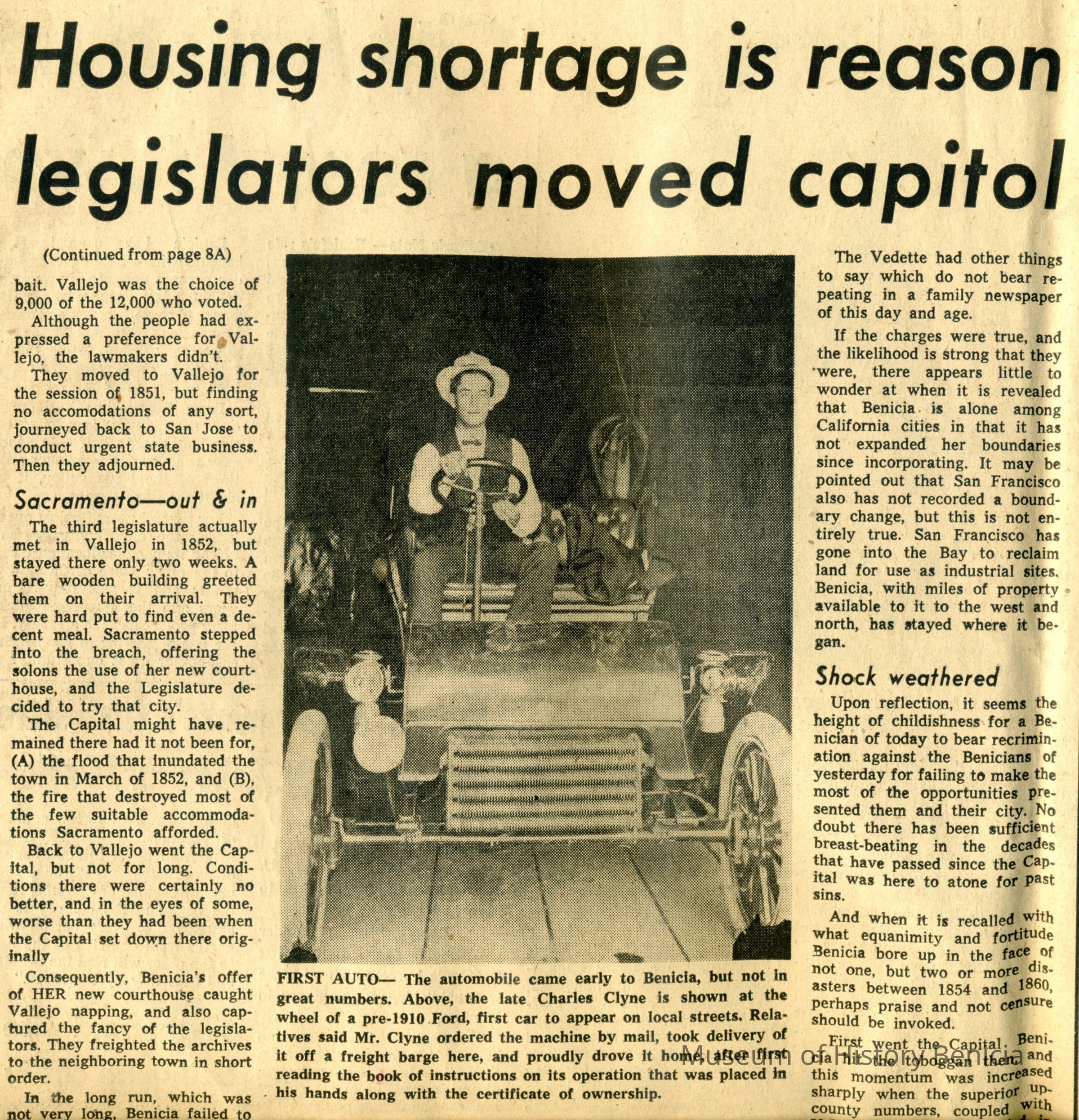 This is a newspaper supplement for the rededication of the Benicia State Capitol celebrations. It covers many historic events and people. Some of the stories in the supplement are: