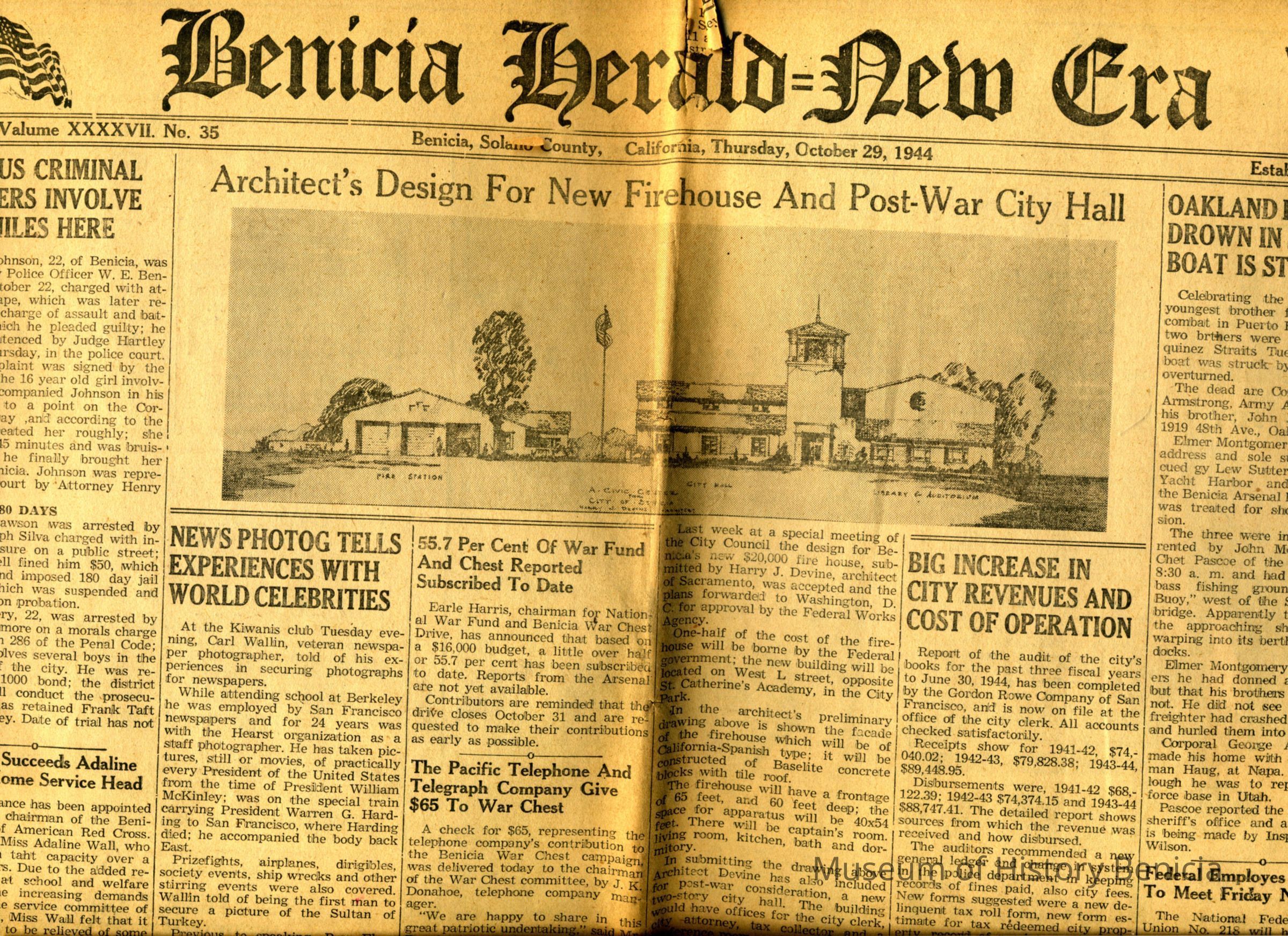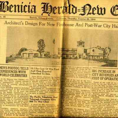 Benicia Herald-- New Era, Thurs. Sept. 21, 1944, vol. No. XXXXVII No. 30. 8 pages. Article chipped from back page. Addressed "AR Johnson/Benicia" top left front.