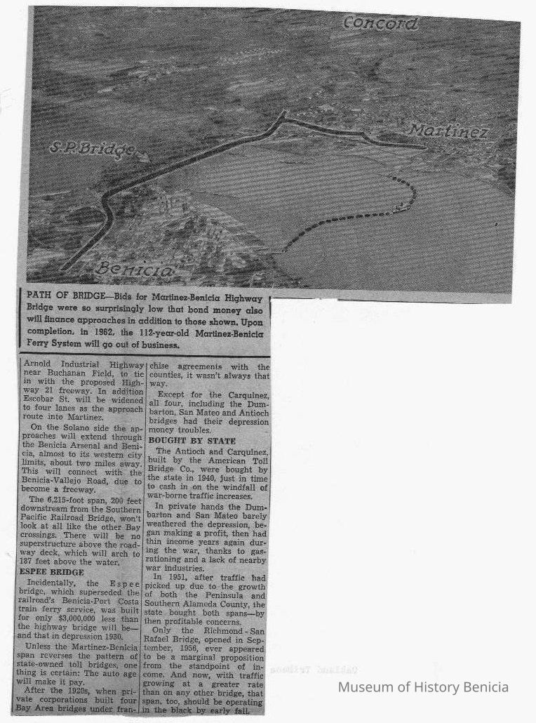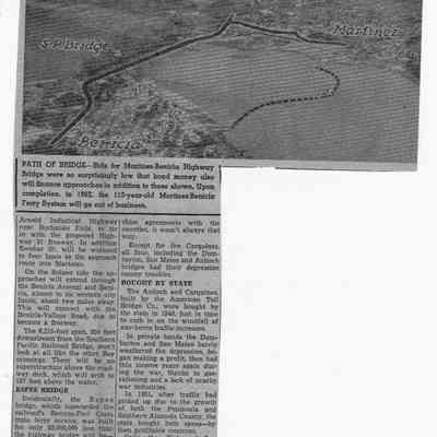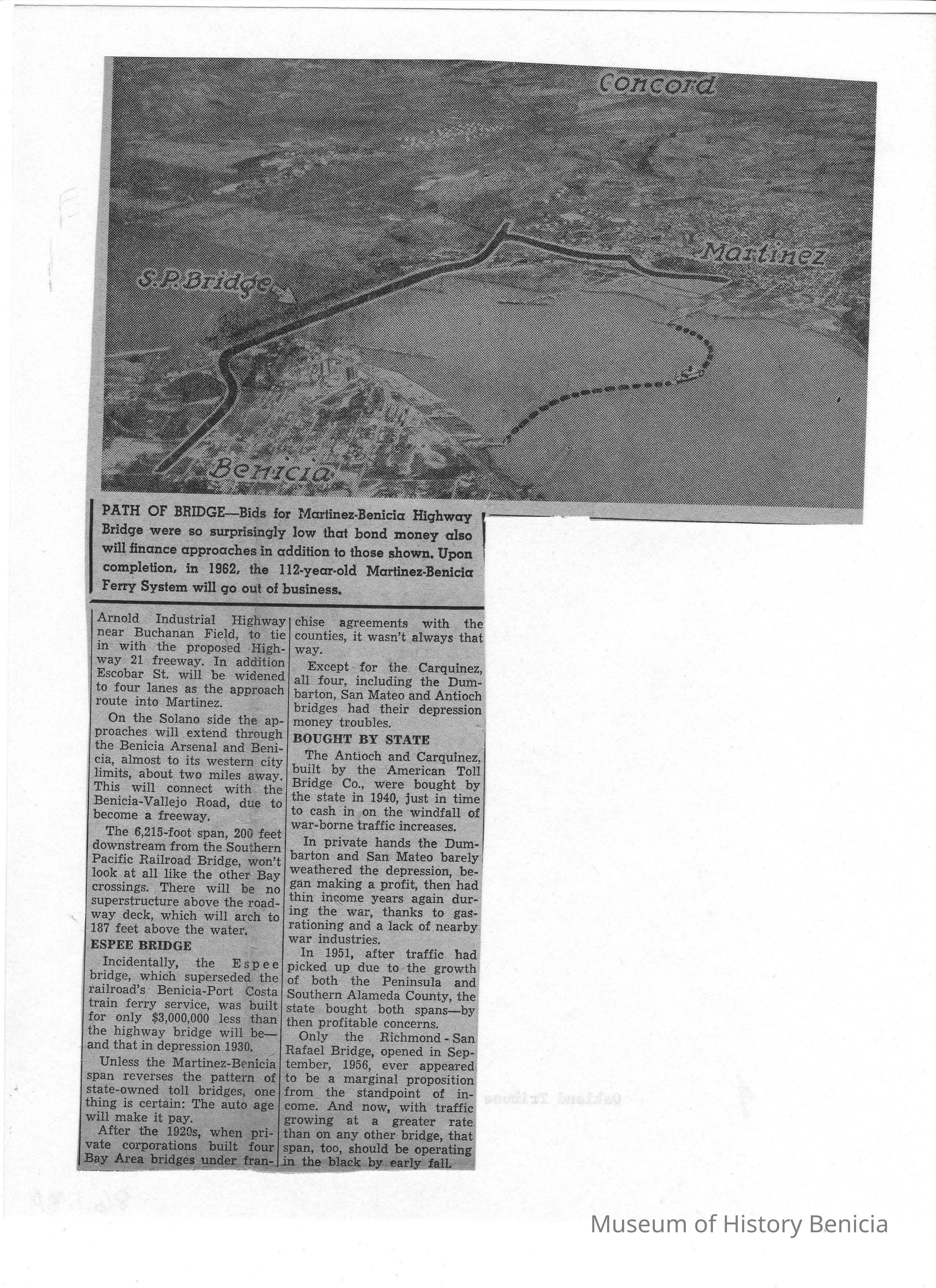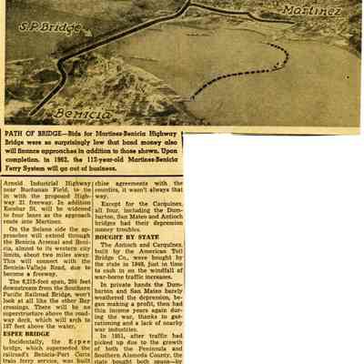 Newspaper Article run July 26, 1959 in the Oakland Tribune about plans for the Benicia-Martinez Bridge with photo.