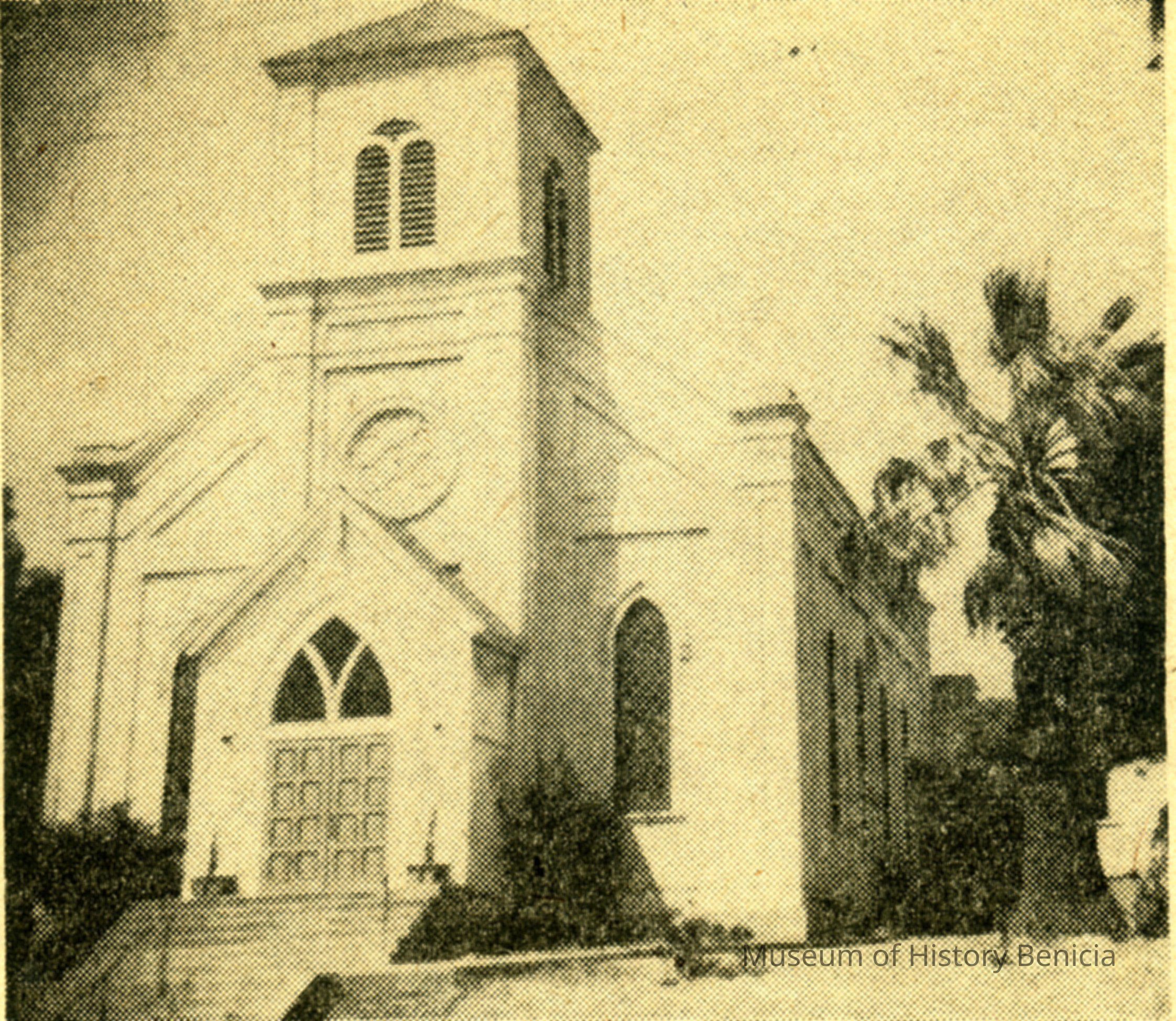 Newspaper photograph of the First Congregational church on west "J" St. Near First St. The Lenoir Miller Collection.