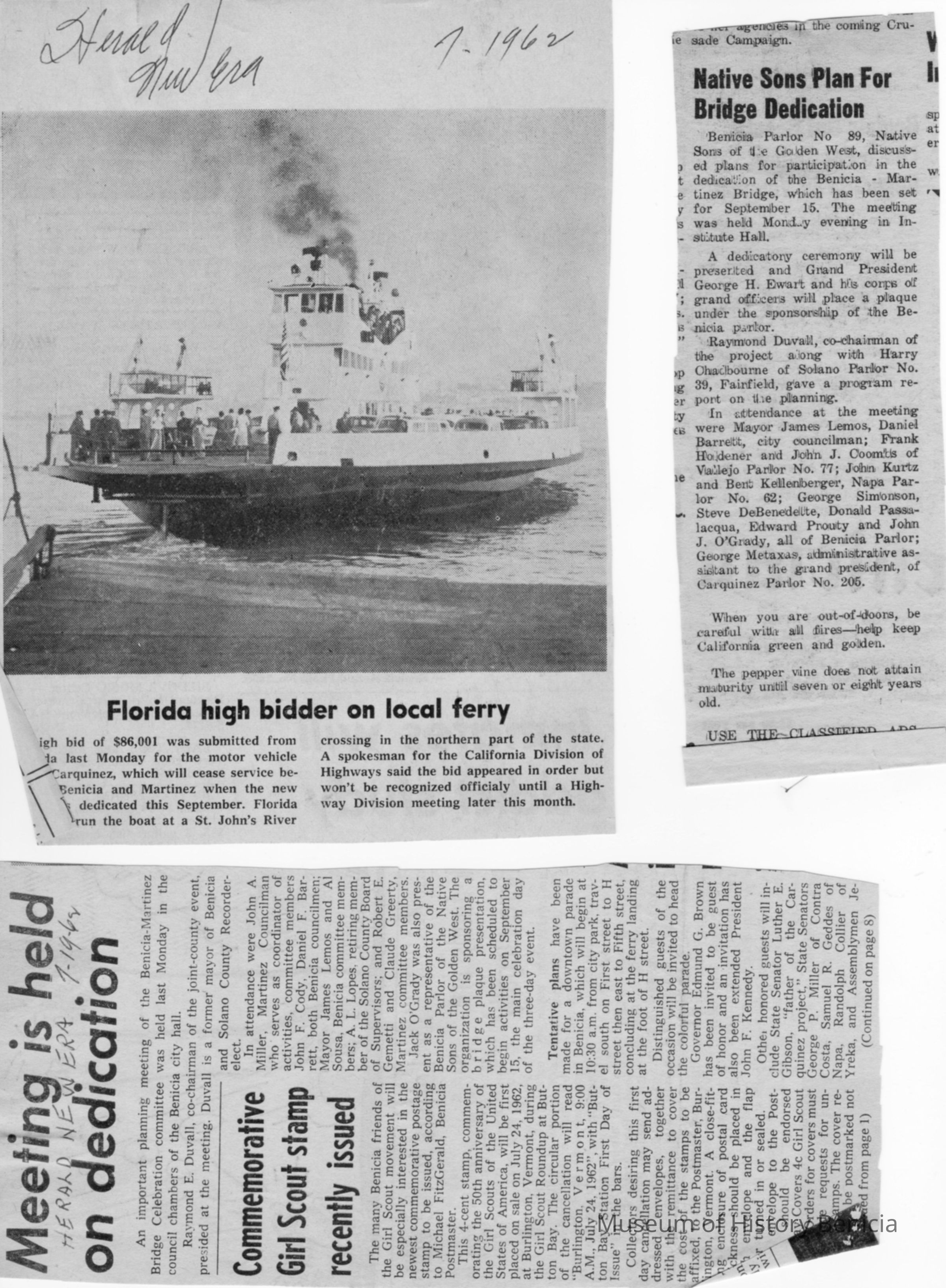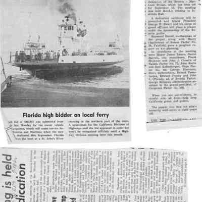 Newspaper clippings regarding the Benicia-Martinez bridge dedication.