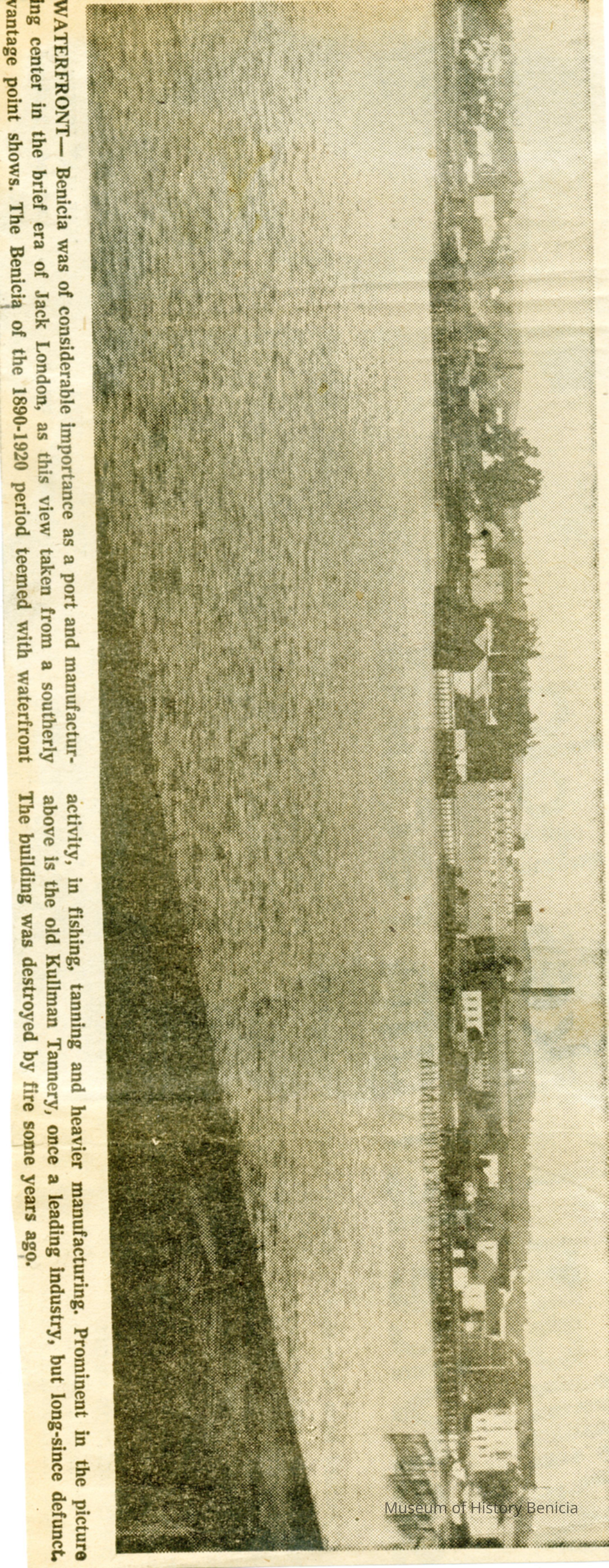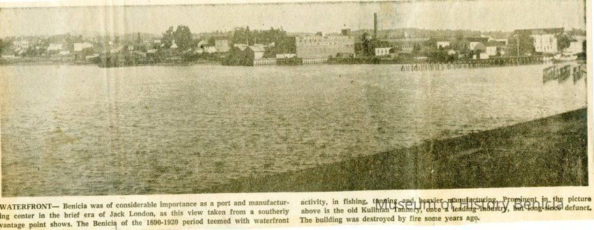 This is a newspaper clipping from the Benicia California Herald of probably 03/15/1958 (see 2004.012.0043). It shows an old photo of Benicia's waterfront.Collection