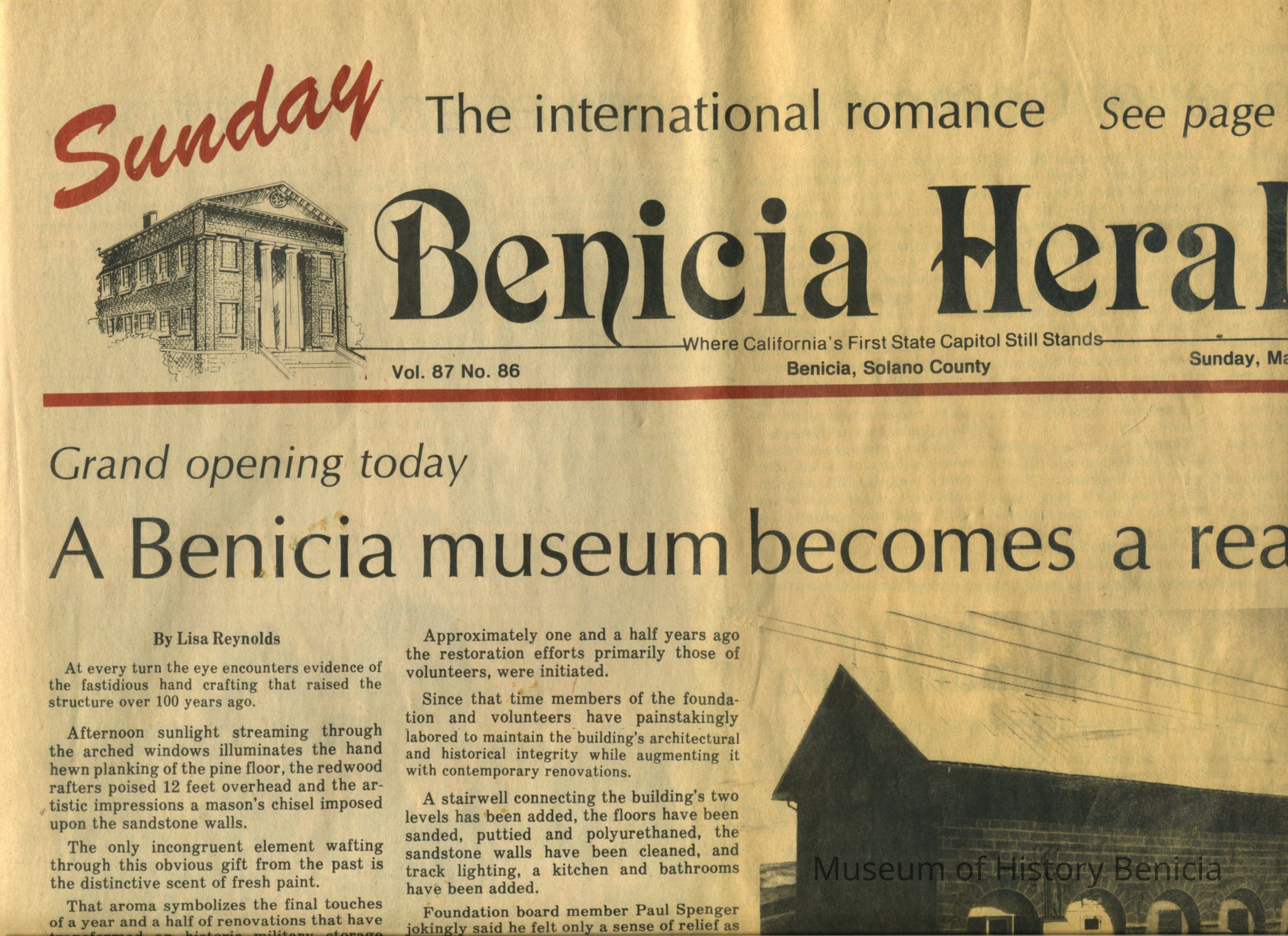 Main Stories: "Benicia Museum Becomes a Reality - Opens Today"