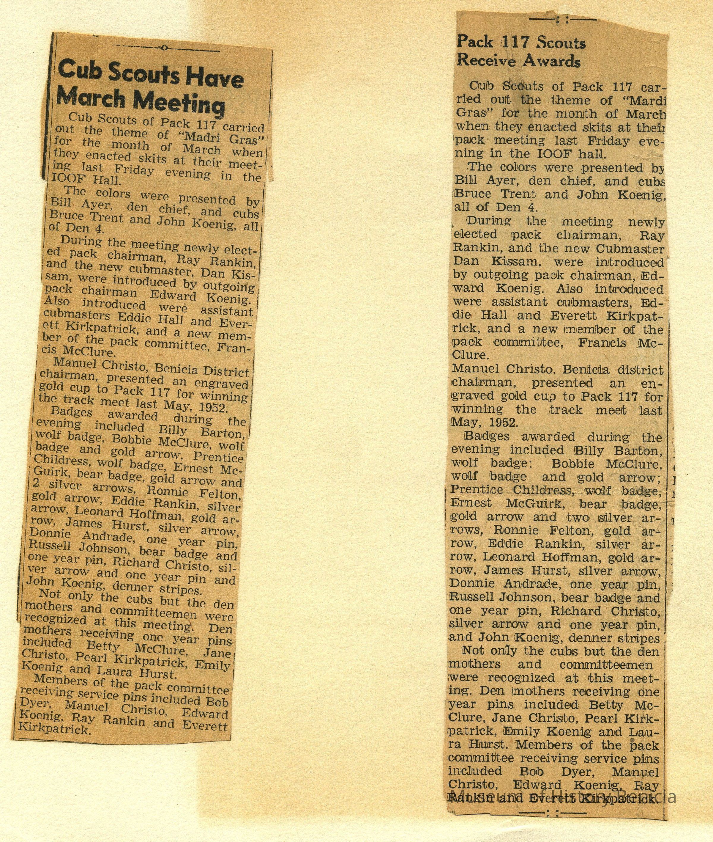 Two newspaper articles concerning Cub Scouting in March 1953;