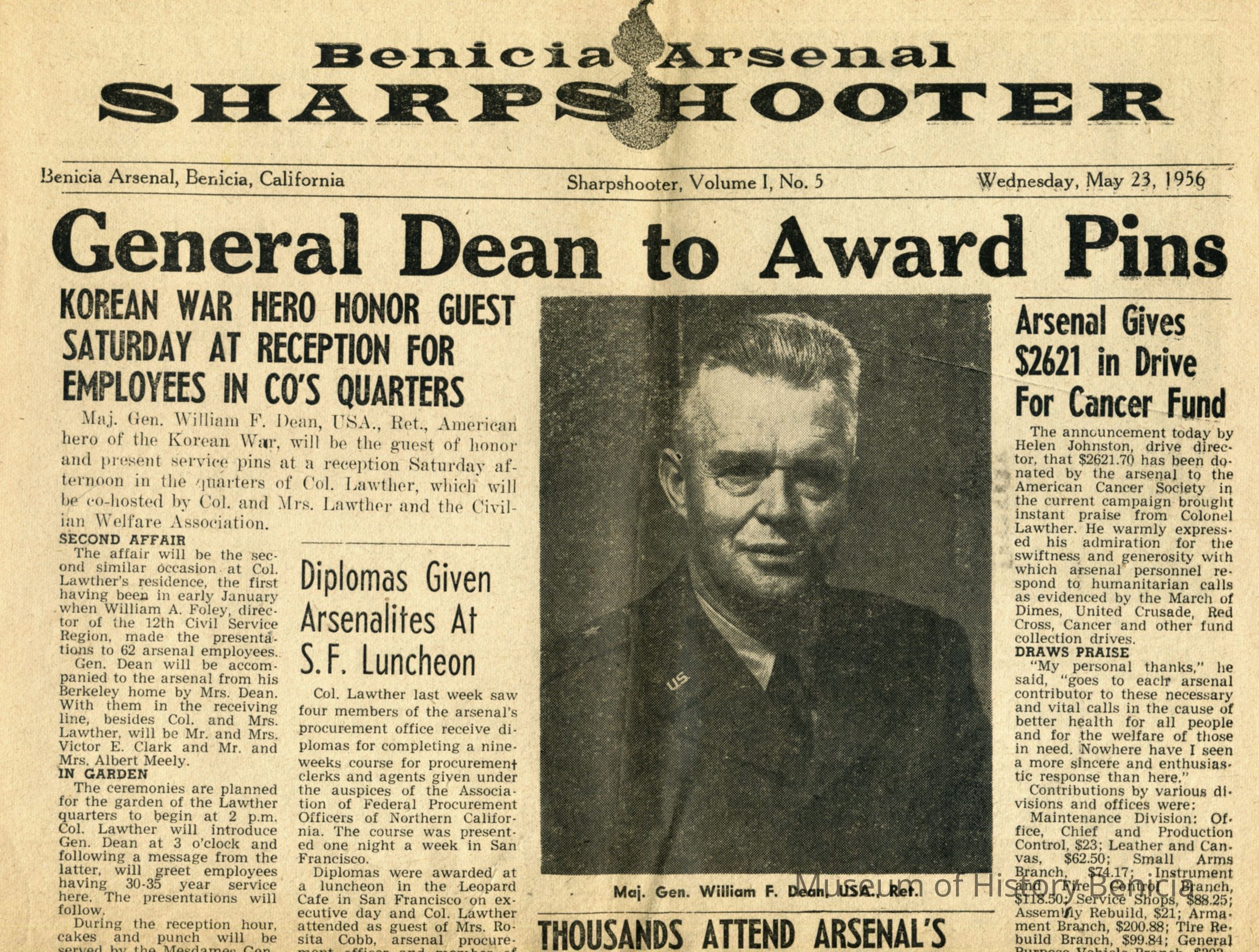 This is a Sharpshooter newspaper from Benicia Arsenal for May 23, 1956 Vol I - No 5.