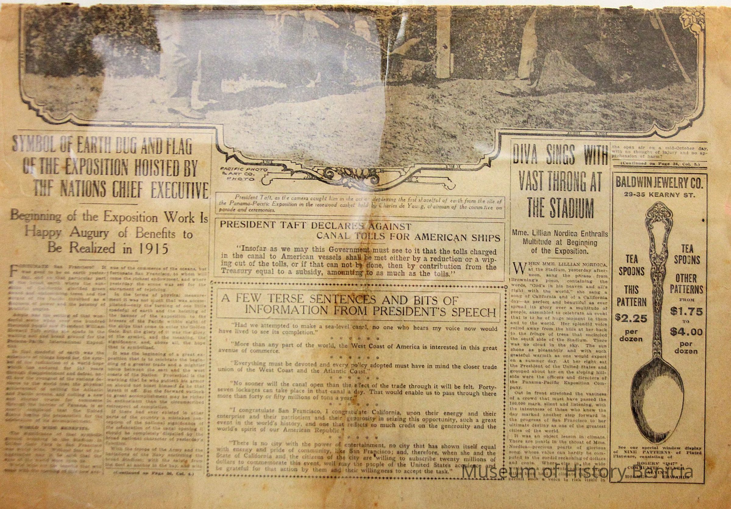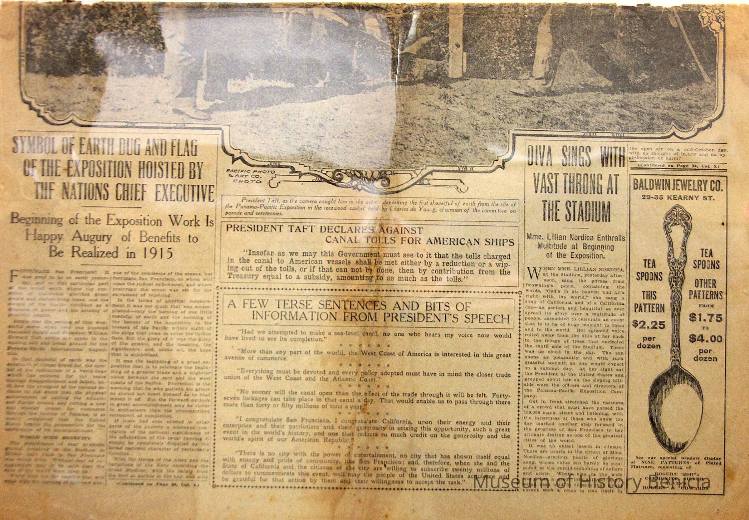 This is the San Francisco Chronicle from 10/15/1911. The headline talks of President Taft breaking ground for the 1915 Panama Pacific Exposition.Collection